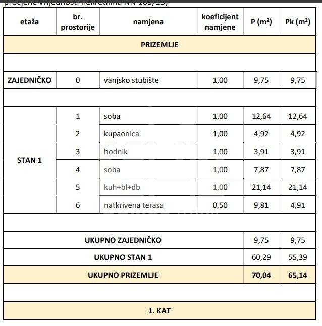 Građevinska brutto površina objekta iznosi 198,18 m2, a površina tlocrta 87,34 m2