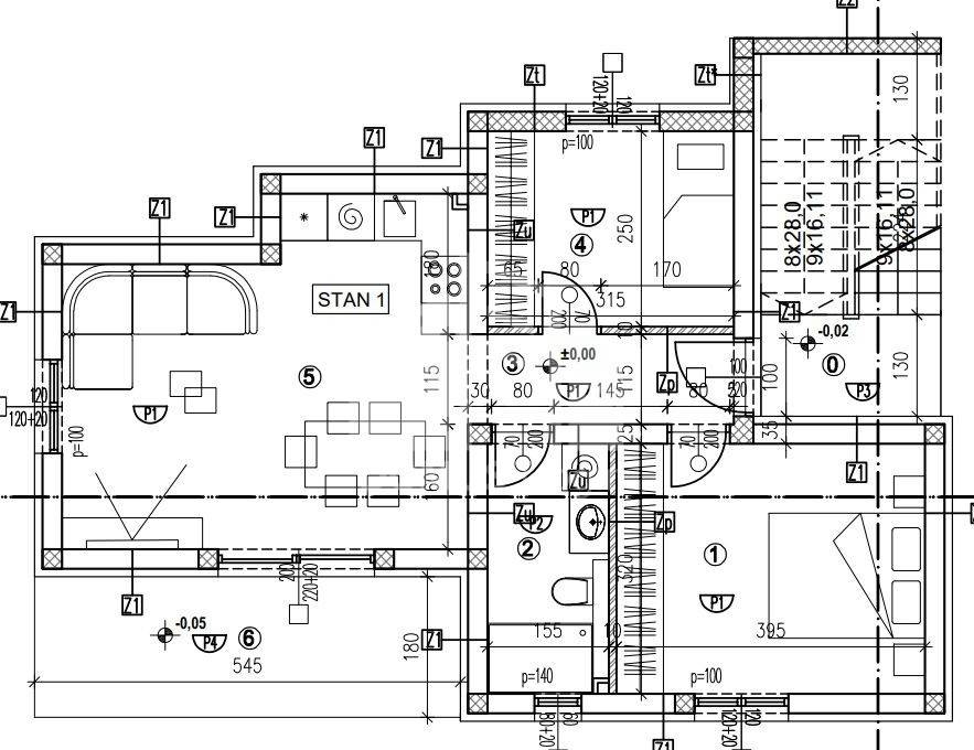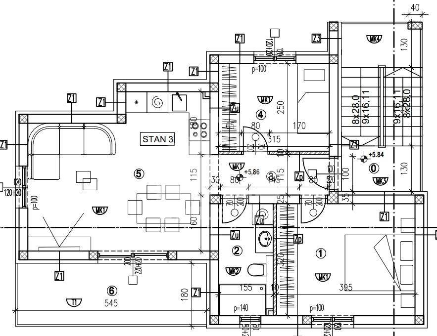 Za zemljište je izrađen arhitektonski projekt za stambenu zgradu od tri stambene jedinice.
