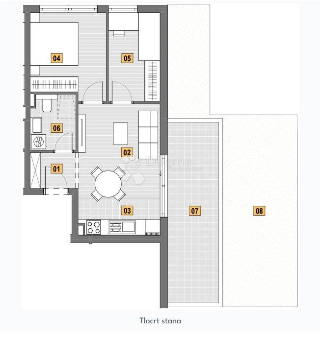Трехкомнатная квартира нулевой этаж, Senj