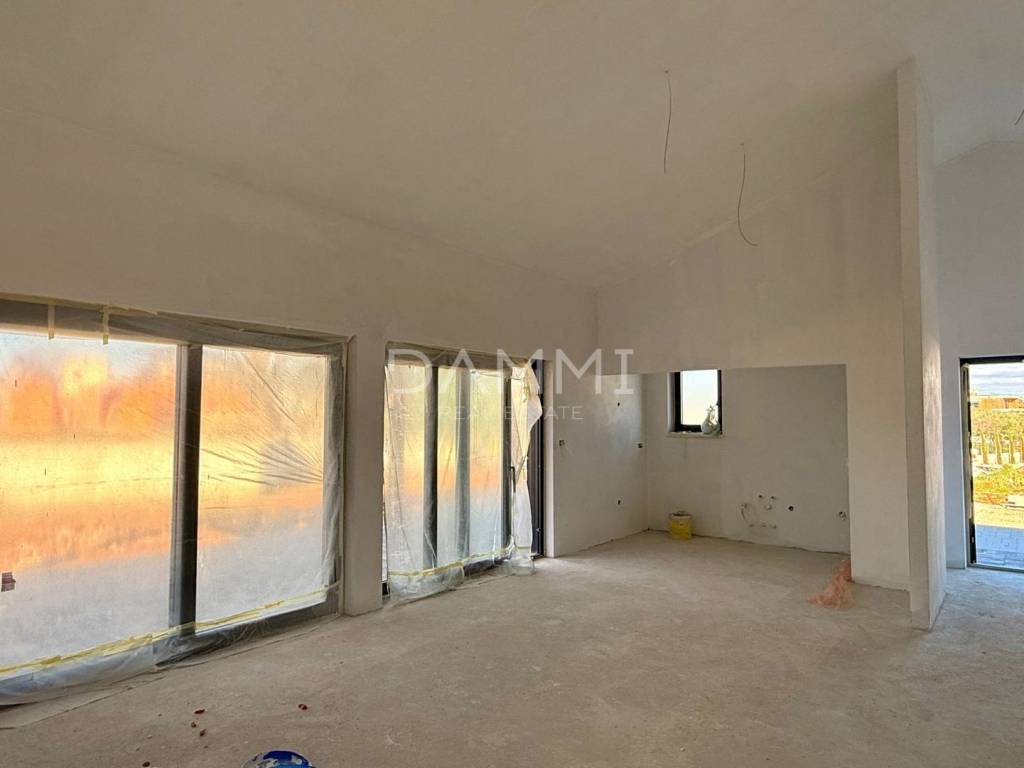В тихой и приятной обстановке недалеко от Пореча, всего в 10 километрах от моря и центра города, расположен этот качественный одноэтажный полуотдельный дом, находящийся в стадии строительства. Недвижимость представляет собой гармоничное сочетание современной архитектуры, функциональной планировки и комфортной жизни в природной среде.
