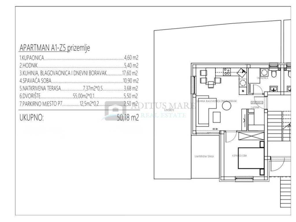 Na prodaju je moderan stan A1 u novogradnji smješten u atraktivnom i mirnom dijelu Ražina. Stan se nalazi u prizemlju stambene zgrade s izlazom na dvorište površine 55 m2. Stan se sastoji od: -jedne spavaće sobe -otvorenog koncepta dnevnog boravka s kuhinjom i blagovaonicom -izlaza na prostranu terasu -potpuno opremljene kupaonice