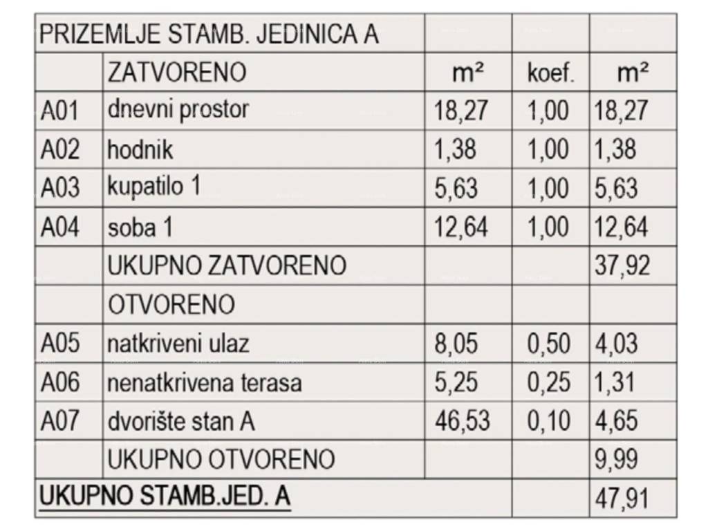 Квартира A находится на первом этаже здания A и состоит из: крытого входа, жилого пространства с кухней и столовой, спальни, ванной комнаты, коридора, открытой террасы и двора. Комплекс расположен в тихом районе, идеальном для семейной жизни или как инвестиция для аренды, с легким доступом ко всем важным объектам магазинам, школе, общественному транспорту и пляжам.
