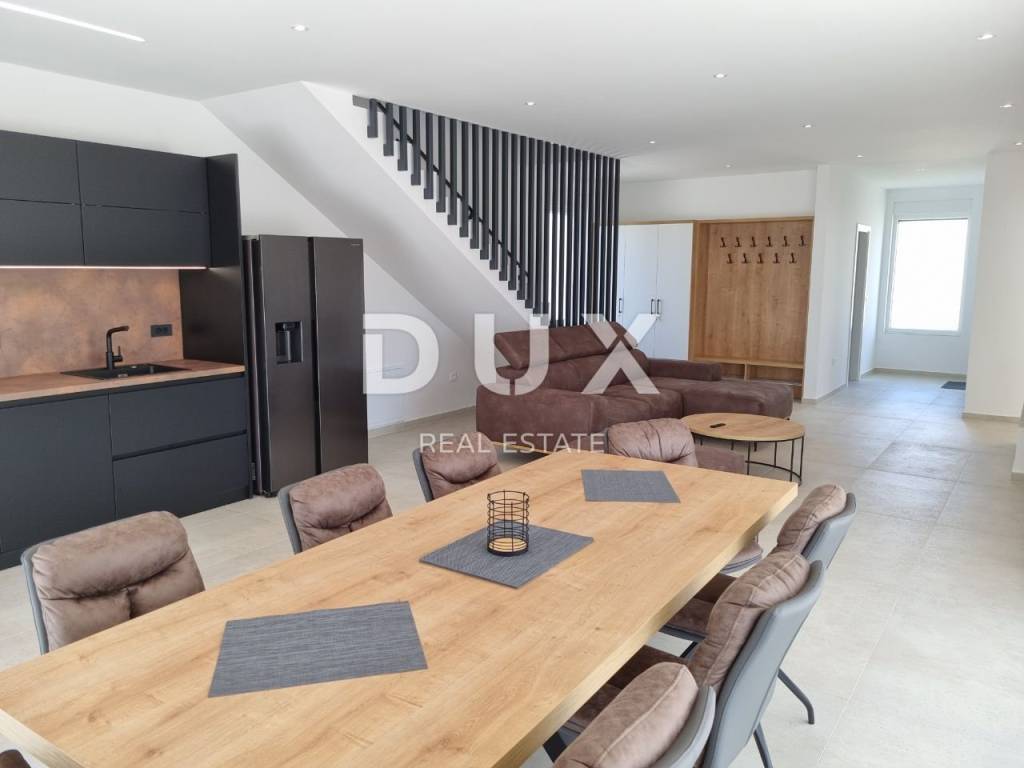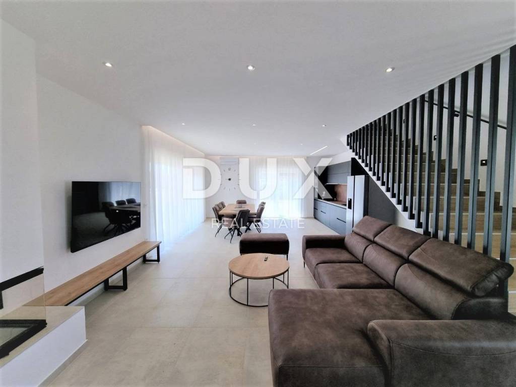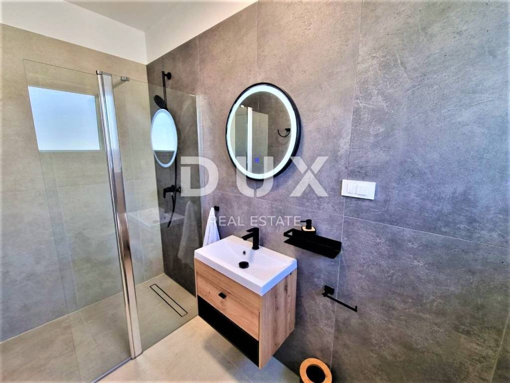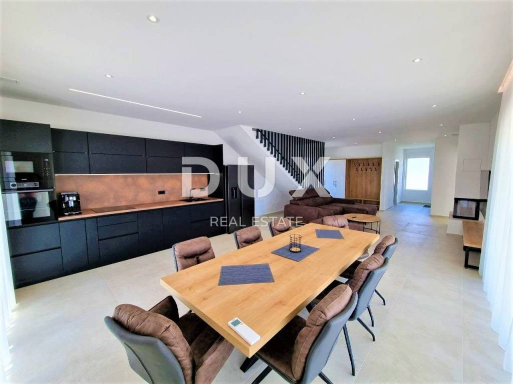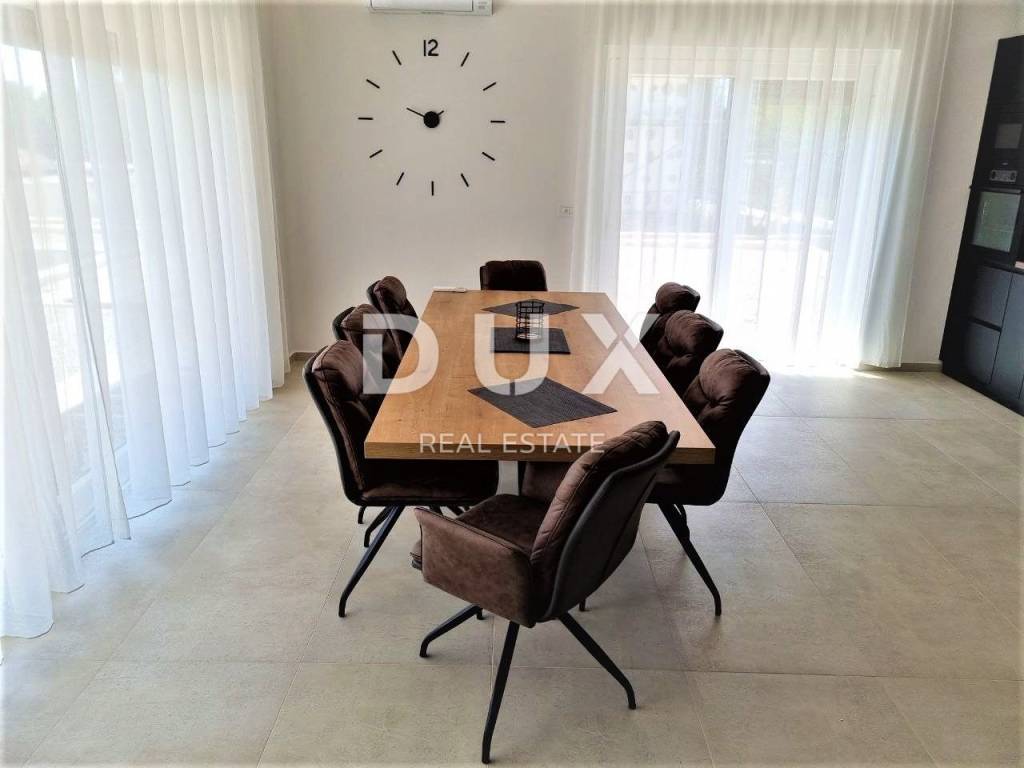 Sveti Lovreč is located in the middle of lush lavender fields in the western part of the Istrian peninsula, in the immediate hinterland of Vrsar, Poreč and Rovinj, and is one of the best preserved medieval fortified towns in Istria. The location of the small town on a gentle hill that dominates the area where as many as 22 settlements, villages and hamlets are scattered speaks of its significant role throughout history. Along the slightly indented western coast of Istria, there are several deep bays, of which the Lim Bay is partially part of the municipality of Sveti Lovreč. The Lim Bay is a natural phenomenon of great scientific and aesthetic value; it was declared a special reserve in the sea. This beautiful modern Villa represents an ideal combination of modern and Istrian style, located near Svetog Lovreč, in a quiet small village consisting of family houses and holiday homes. The villa extends over two floors. It has a total area of 198.82 m2 and is located on a plot of 792 m2. The ground floor of this villa consists of a porch, an entrance hall, a bathroom, a laundry room, a technical room, a storage room, a bedroom with a private bathroom adapted for people with disabilities, and a spacious living room with a dining room and a modern kitchen in an open space concept. From the living room there is direct access to the covered terrace and sunbathing area with a swimming pool, creating a perfect space for relaxation and enjoyment. The staircase leads to the first floor of this Villa, which consists of a hallway and three bedrooms, each with its own bathroom. All bedrooms have access to a covered balcony with beautiful views of nature. The rooms are fully equipped with quality furniture, satellite television and air conditioning, providing comfort and privacy. There is a swimming pool with internal dimensions of 9x3.5 meters in the beautiful garden. The pool has a concrete staircase, three jets near the stairs and two on the floor. It will be coated with D3 foil and the pool is prepared for heating, so all you have to do is install the pool heating device. Stones will be placed on all paths around the house, as well as on the beach by the pool. Artificial grass will be placed on one side of the pool to prevent dirt from entering the pool. The yard will be beautifully decorated with Mediterranean plants and grass will be planted on the back side of the house with an irrigation system. A metal fence will be placed around the Villa, on which a green fence will also be placed so that you have complete privacy while enjoying this Villa. There will be two entrances, one of which is an entrance via a remote-controlled electric fence. A spacious summer kitchen will be located by the pool, which will be covered on 3 sides plus blinds. The summer kitchen will have a large fireplace, gas grill and water. It will be connected to the house with sails so that you can enjoy the shade in the hot summer months. Next to the summer kitchen, there will be a children's park for the entertainment of the youngest members of the family. At the back of the Villa, there will be an object that will be anthracite black in color and will serve as a storage room for deckchairs and all other equipment. The facility will have water and electricity. Next to this building there will be a space for bicycles. There is also a parking lot that will be paved with paving stones measuring 30x60 cm. The parking lot is for two to three cars and will be covered in anthracite black. There will also be an electric charging station for your tin pets in the parking lot. The house has a bio septic tank. Video surveillance is installed around the entire Villa and there are a total of 7 cameras. The heating is via floor heating on a heat pump, which is carried through the entire house. Air conditioners and devices are installed in all rooms and are also used for heating and cooling. There is also a fireplace in the living room, so you have another heating source. Two solar panels for hot water are installed on the roof, and the boiler is 400 liters. The whole house is connected to a water purifier. This beautiful Villa has an additional advantage - from the end of the year it will be equipped with 13 electric solar panels, creating its own power plant of 7.4 kW. This will significantly reduce energy costs for future owners. The price includes high-quality custom-made furniture. Attention was also paid to indoor and outdoor lighting, which can be regulated. Mosquito nets are installed throughout the house, except for the large glass walls. Electric blinds are installed on the windows. The outer insulation is 10 cm, and the floor is 13 cm. The carpentry is made of PVC. The villa is finished and all that remains is to arrange the garden, swimming pool and outdoor facilities. By the end of 2023, the Villa will be completely finished, including landscaping of the garden, swimming pool and outdoor facilities. In about fifteen minutes you can already be in Poreč, Vrsar and on the well-maintained beaches. The first shops, restaurants and other facilities are located in Sveti Lovreč and you can be there in just a few minutes. This villa represents an excellent opportunity for family life, a luxurious vacation from the stress of city life in the Mediterranean climate or as a financial investment for rental.