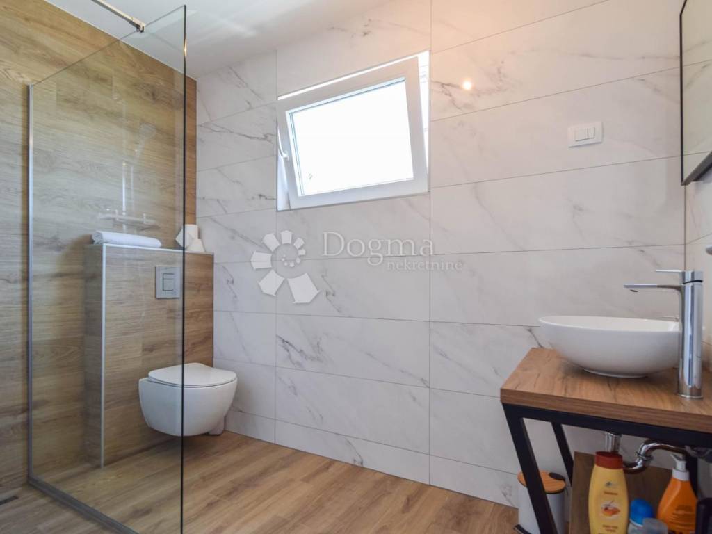 For sale is a modern semi-detached house with a total living area of 135.3 m, located in a quiet part of Novigrad. The property includes a landscaped garden of 267 m, offering plenty of outdoor space and privacy.