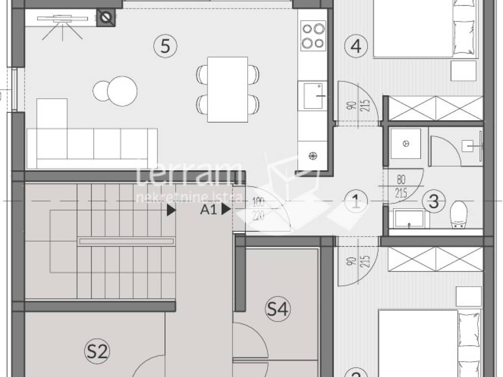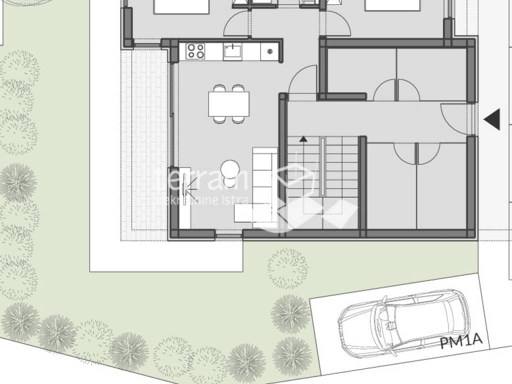 Истра, Пула, Валдебек, первый этаж 61,36 м2, 2 комнаты + гостиная с обеденной зоной, кладовая, парковка, НОВО, #продажа