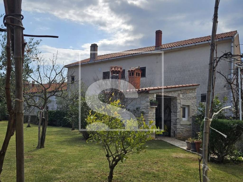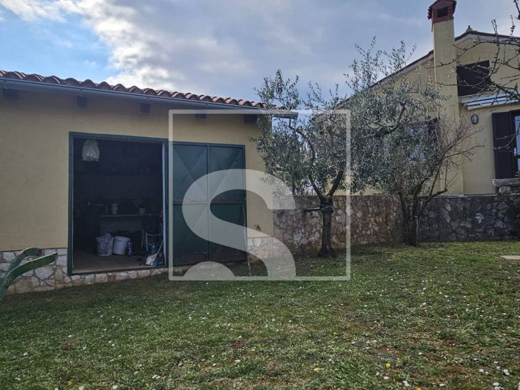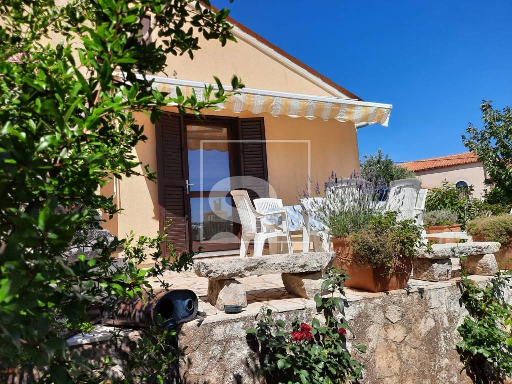 A house with two residential units is for sale in Kavran, situated on a fenced plot with a landscaped garden, additional structures, and a sea view.
