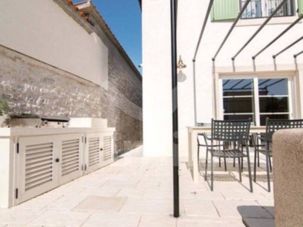 This modern two-story house with a living area of 85 m2, of high quality and recent construction, offers a perfect combination of functionality and a pleasant stay and is located in a quiet settlement within the Barban municipality. On the ground floor there is a spacious living room connected to the kitchen and dining room in an open space concept, with access through a glass wall to the terrace and a landscaped garden with a summer kitchen. Also on the ground floor there is a guest toilet and a practical laundry room. An internal stone-clad staircase leads to the first floor where there are two comfortable bedrooms, each with its own bathroom and air conditioning unit, which ensures maximum privacy and comfort. The house is equipped with PVC windows with shutters and the floors are covered with quality ceramics and stone. On the fenced plot of 252 m2 there is also a 15 m2 swimming pool, ideal for relaxing and enjoying during the warmer days, making this property an excellent choice for a vacation or year-round residence.