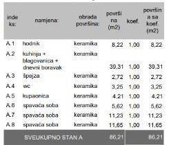 Квартира 1 находится на первом этаже здания А и состоит из коридора, гостиной с кухней и столовой, кладовой, туалета, ванной комнаты, трех спален и сада площадью 60 м2.