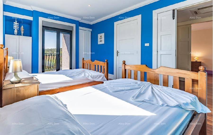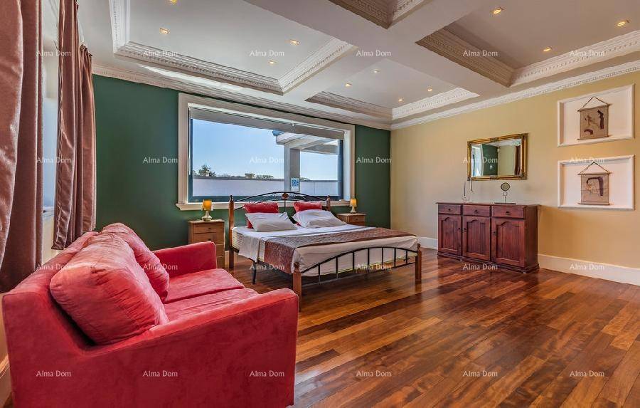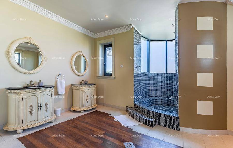 Отдельная роскошная вилла с бассейном. 5 минут пешком до пристани и моря. Этот красивый дом находится всего в 300 м от моря. На первом этаже виллы находится просторная гостиная с бильярдом и настольным теннисом, кухня, кабинет, санузел и лестница наверх. В галерее есть небольшой тренажерный зал, три спальни, 2 санузла. Центральное отопление и кондиционирование во всем доме. В саду виллы есть бассейн 8 х 3,5 м. Три внешних парковочных места и два гаражных места.
