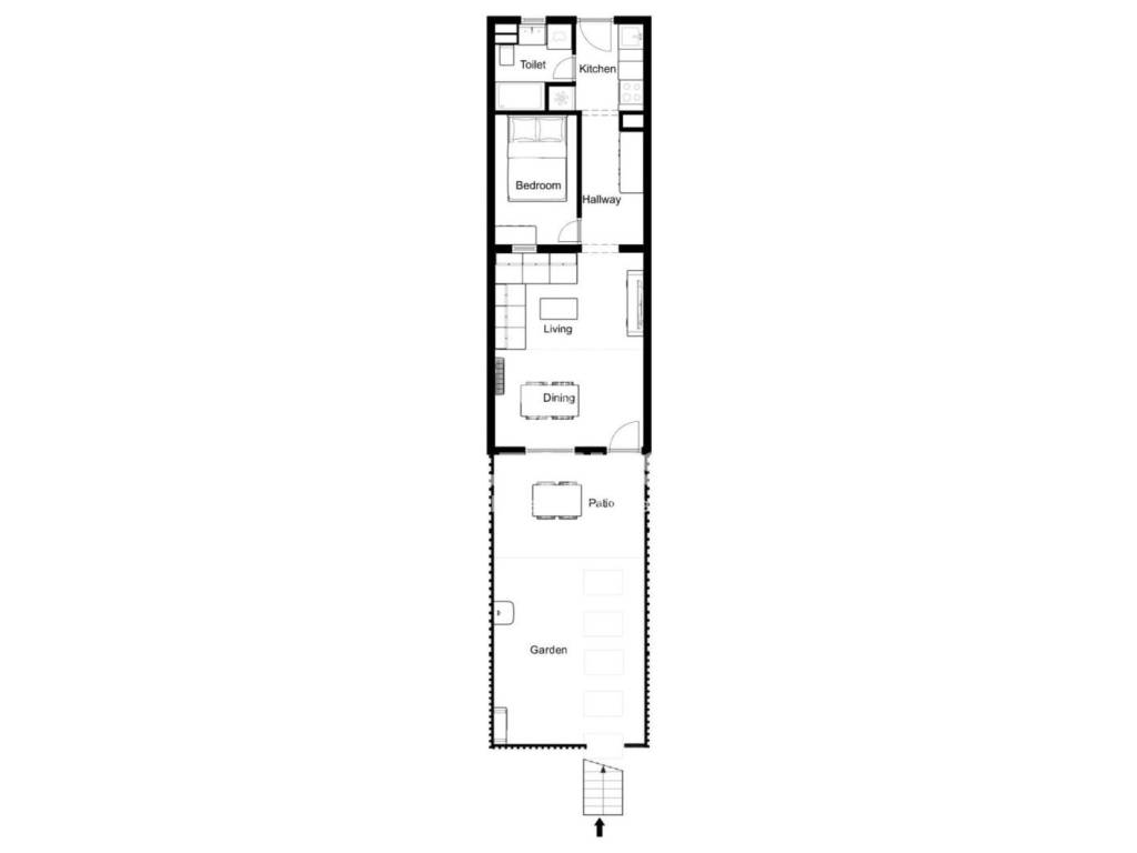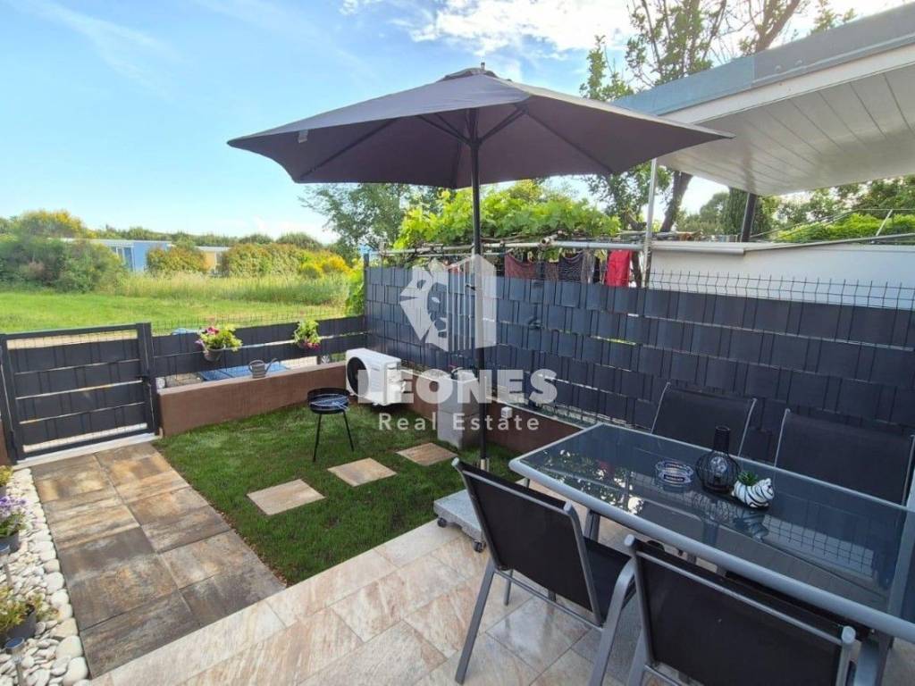It consists of a living room, kitchen, bathroom, and bedroom. The living area opens onto a landscaped garden that is also registered in the land registry, with all paperwork in order.