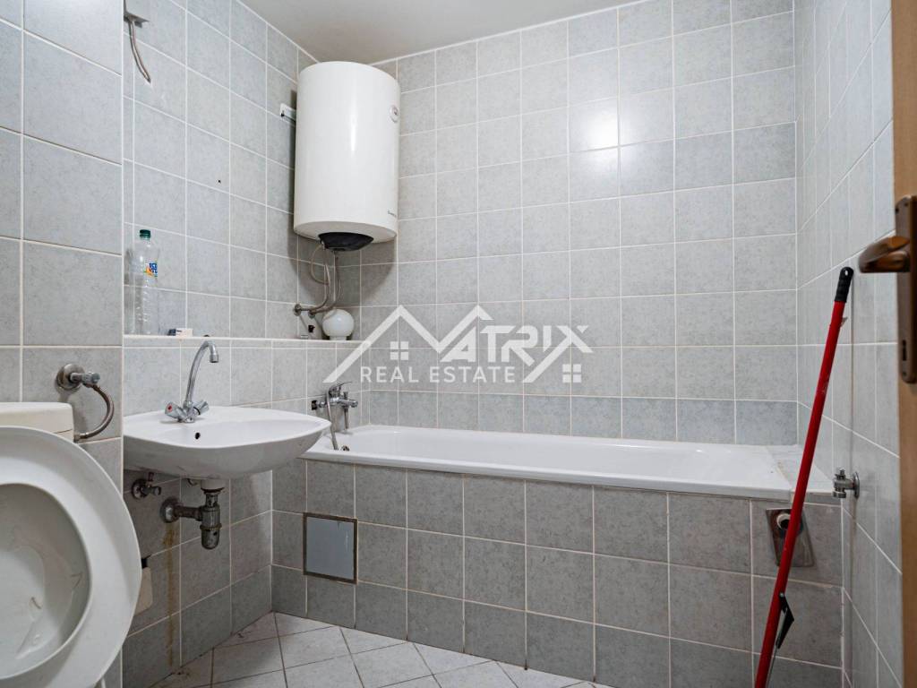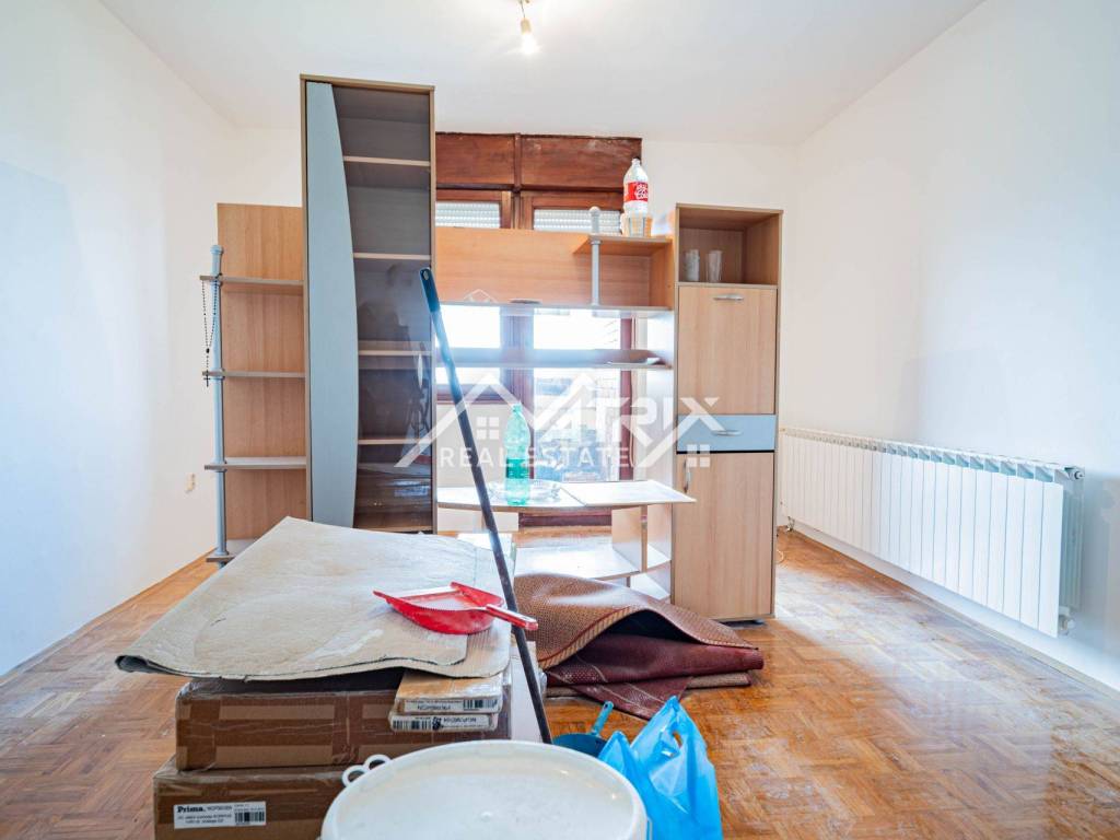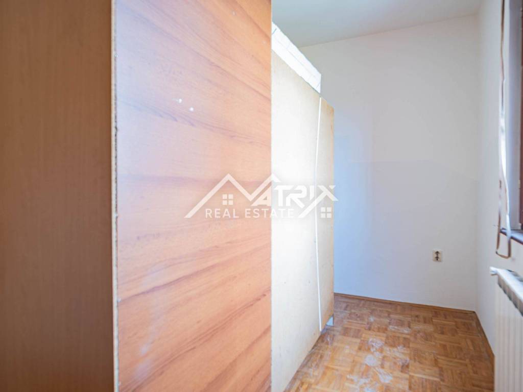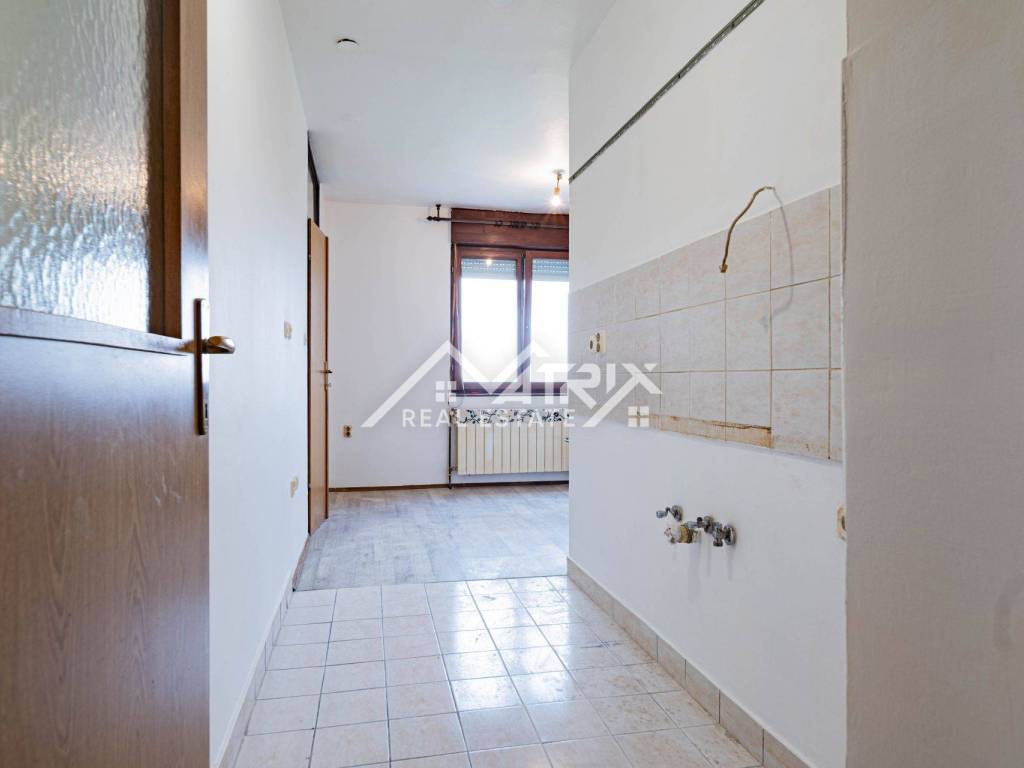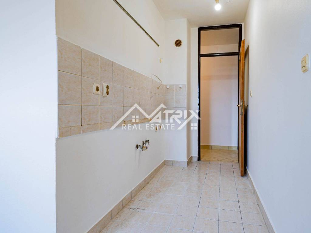 For sale: a two-room apartment in Vukovar, located on the 6th floor of a residential building with an elevator (not the top floor). The apartment is neatly painted and sold unfurnished, giving the future owner the freedom to furnish it to their taste or prepare it for rental. With a total area of 58.75 m² and an included loggia, it offers a practical layout and comfortable living space. The layout features an entry hall, one bedroom, a bathroom, a kitchen with dining area, and a living room with access to the balcony/loggia. Added convenience comes from a storage room accessed directly from the kitchen—perfect for groceries and household items. Heating is central via the city district heating system, ensuring reliable winter comfort and easy maintenance.