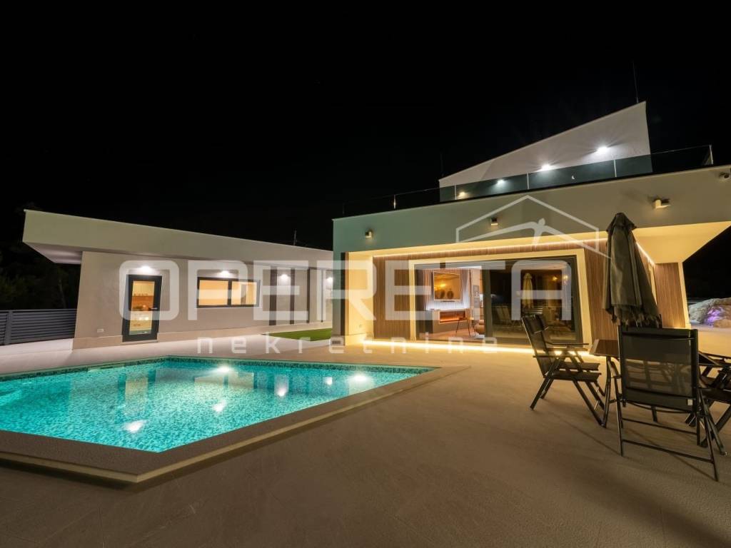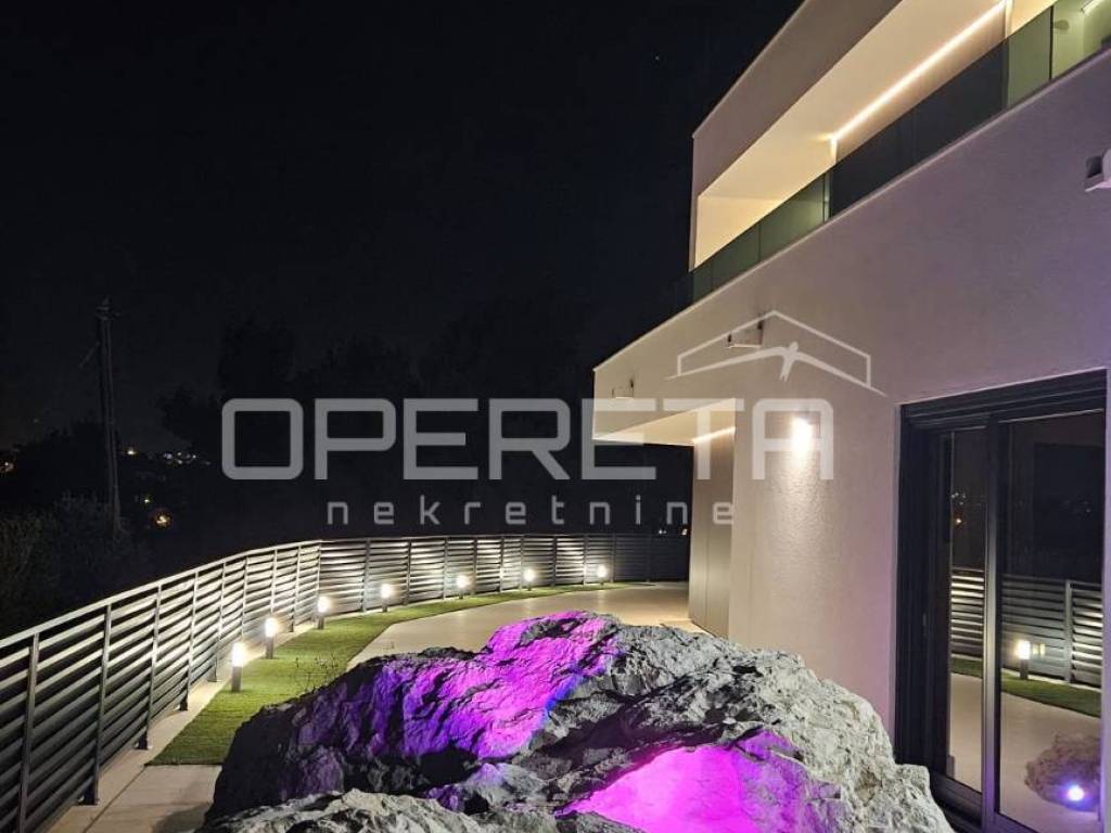 In Stobreč, in an elevated and quiet position near Split, there is a modern villa that stands out with open panoramic views of the sea, a high level of privacy, and a harmonious relationship between architecture and the Mediterranean environment.