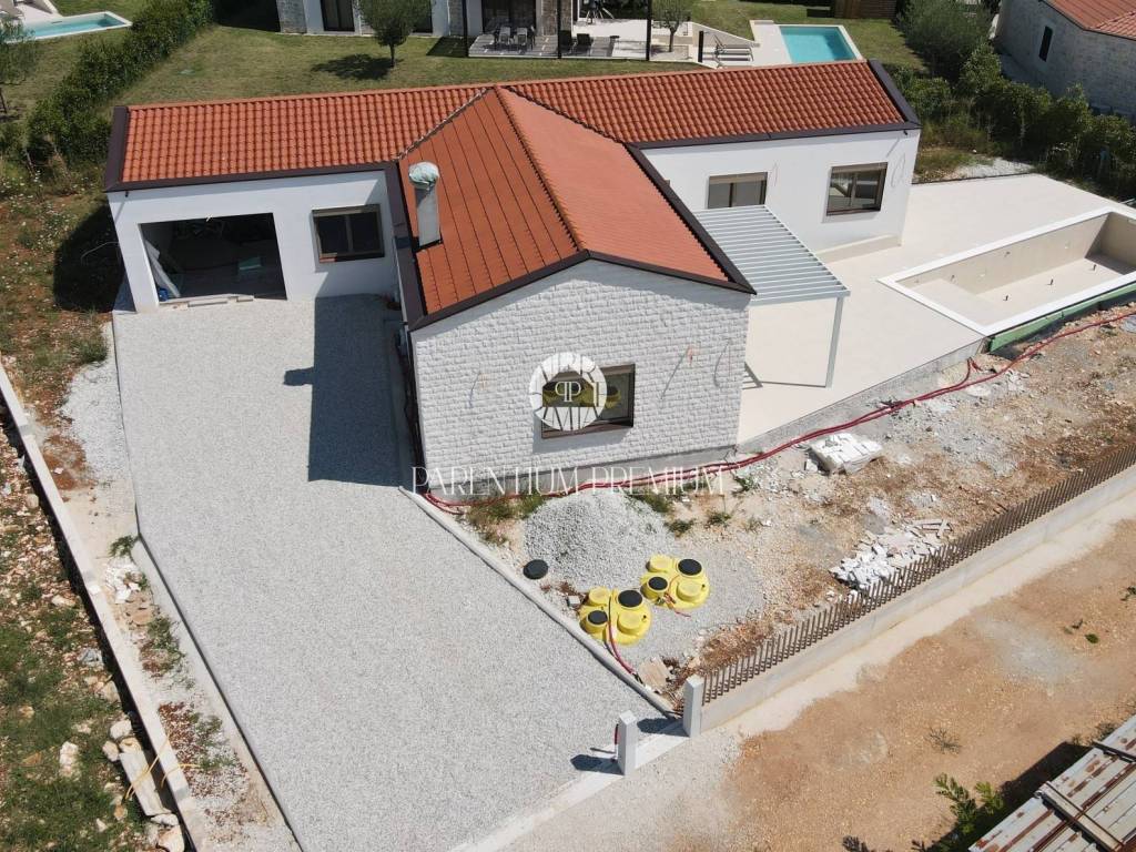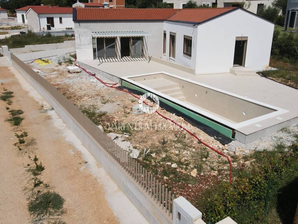 This modern single-storey house of 160 m is located in a quiet area near Poreč, on a spacious plot of 806 m.