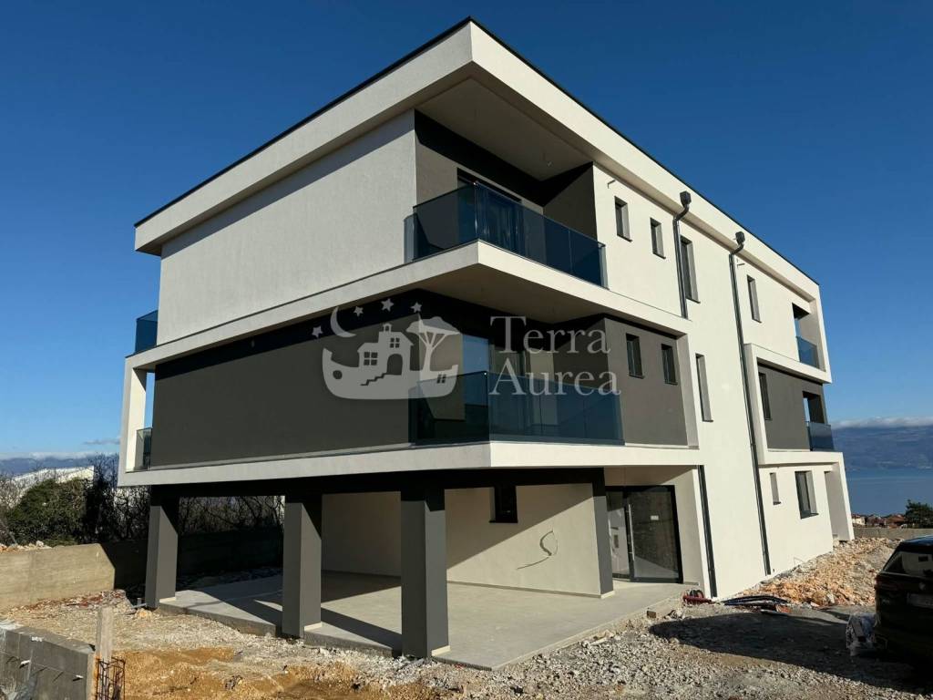 In an attractive location in Vrbnik on the island of Krk, only 400 m from the sea, a spacious apartment is for sale located on the ground floor of a modern new building - an urban villa with a total of three residential units.