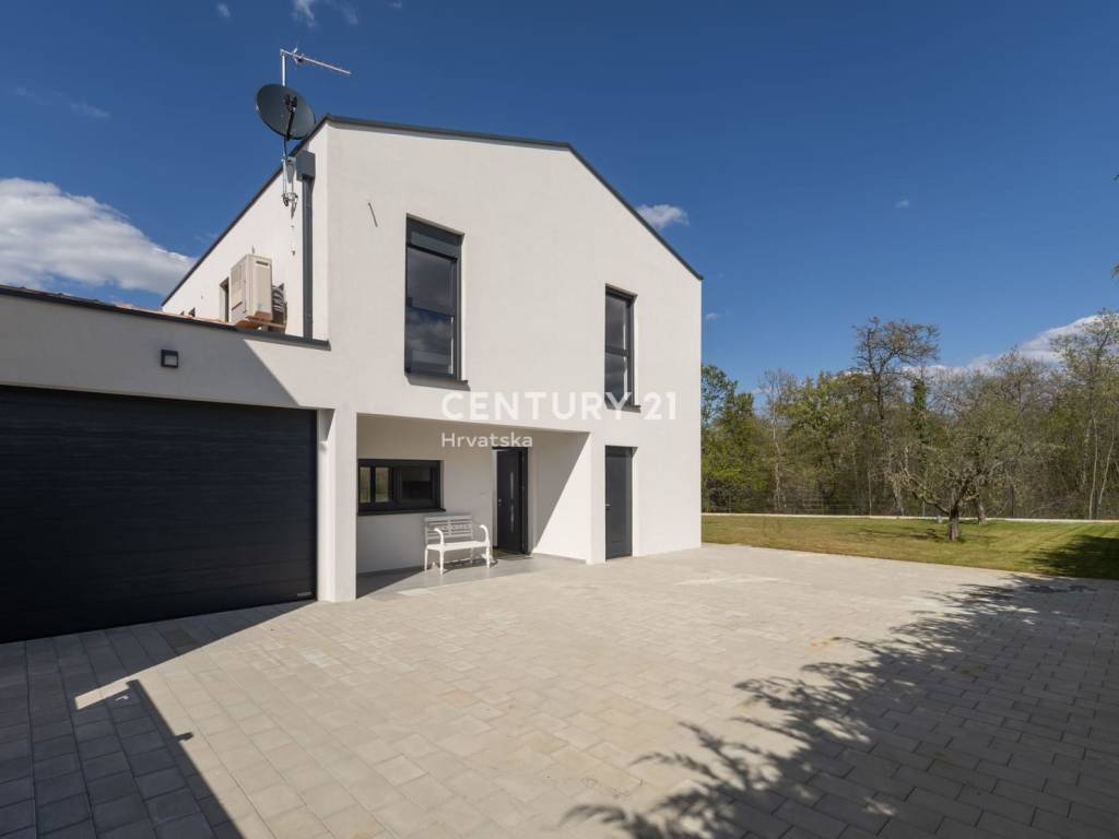 Smještena u mirnom i privatnom okruženju na kraju slijepe ulice, okružena zelenilom i na rubu građevinske zone, ova visokokvalitetna kuća nudi idealan spoj privatnosti, udobnosti i funkcionalnosti.