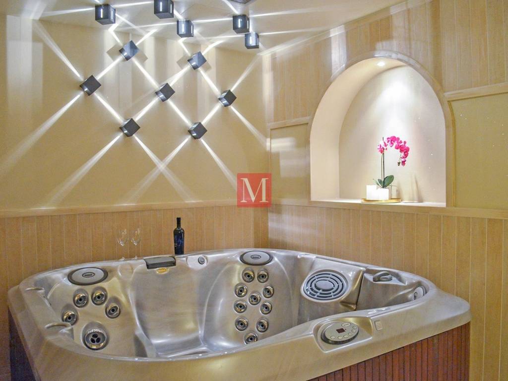 basement: double garage, laundry room, maintenance entrance, utility room, heating system, toilet, party room with wine cellar, wellness with professional sauna for 8-10 people, 6 people jacuzzi and designer shower, room for garden tools and similar, two elevators, access to private wood.