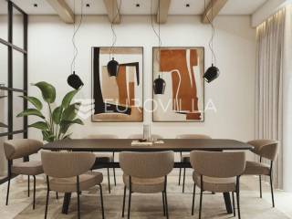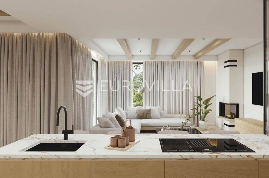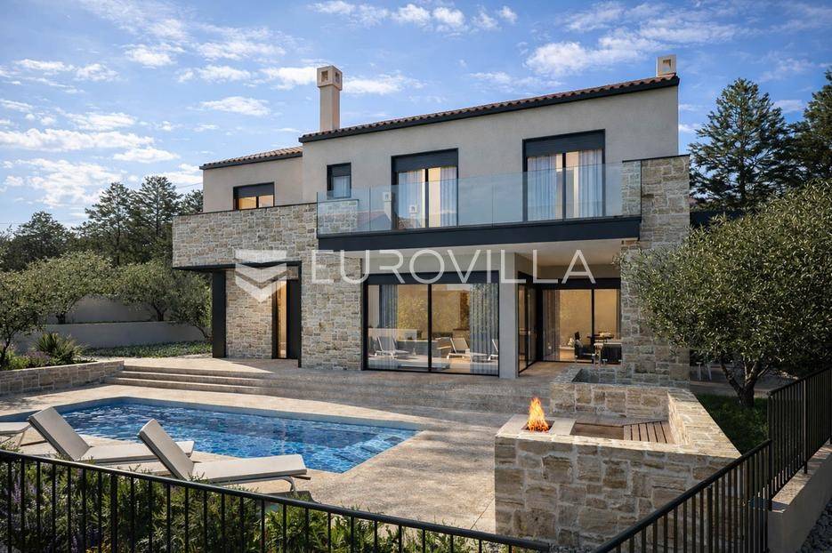 Otok Krk, Šilo, luksuzna vila prvi red do mora s grijanim bazenom.U mirnom i intimnom dijelu Šila, 150 metara od mora i plaže, smještena je suvremena vila projektirana prema standardu vile s 5 zvjezdica.Nalazi se u prvom redu prema moru, s otvorenim pogledom, na parceli površine 710 m², dok sama vila ima ukupno oko 232 m² stambene površine.Prizemlje vile čini prostrani open space prostor koji povezuje dnevni boravak s kuhinjom i blagovaonicom, uz direktan izlaz na natkrivenu terasu i uređenu okućnicu. Tu su još ulazni hodnik, tehnička soba i spremište, gostinjski wc te dodatna, pomoćna kuhinja smještena uz glavnu kuhinju.Na katu su smještene četiri spavaće sobe, svaka s vlastitom kupaonicom, te dva balkona s kojih se pruža otvoreni pogled na more.Eksterijer je u potpunosti prilagođen boravku tijekom cijele godine - grijani privatni bazen, sunčalište, ljetna kuhinja te hortikulturno uređena parcela s maslinama starim 150 godina.Vila se prodaje potpuno opremljena, uključujući dizajnerski namještaj i svu opremu (kuhinjski uređaji, tekstil, posuđe), što je čini spremnom za korištenje ili turistički najam bez dodatnih ulaganja.U gradnji i opremanju korišteni su kvalitetni i provjereni materijali i sustavi:– aluminijska stolarija Wicona s troslojnim kaljenim staklom– PVC stolarija Rehau (Synego sustav)– sanitarije Hansgrohe– podno grijanje putem dizalice topline i multi-split sustav hlađenja Mitsubishi Electric– keramičke pločice velikog formata (120×120 i 120×60), prva klasa talijanskog proizvođača Mariner, uključujući protuklizne vanjske površine (R11)Projekt je realiziran uz visok standard izvedbe, stručni nadzor i provjerene izvođače, s naglaskom na dugoročnu kvalitetu i funkcionalnost.Planirani završetak gradnje je lipanj 2026. godine.Za više informacija i razgled slobodno nas kontaktirajte.... Više na eurovilla.hr, ID: 101642