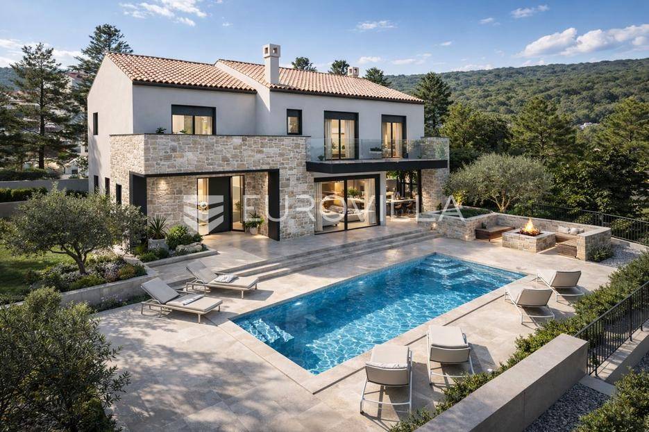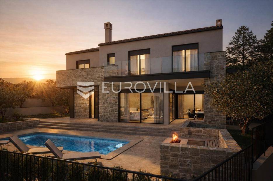 Otok Krk, Šilo, luksuzna vila prvi red do mora, grijani bazen.U mirnom i intimnom dijelu Šila, 150 metara od mora i plaže, smještena je suvremena vila projektirana prema standardu vile s 5 zvjezdica.Nalazi se u prvom redu prema moru, s otvorenim pogledom, na parceli površine 820 m², dok sama vila ima ukupno oko 232 m² stambene površine.Prizemlje vile čini prostrani open space prostor koji povezuje dnevni boravak s kuhinjom i blagovaonicom, uz direktan izlaz na natkrivenu terasu i uređenu okućnicu. Tu su još ulazni hodnik, tehnička soba i spremište, gostinjski wc te dodatna, pomoćna kuhinja smještena uz glavnu kuhinju.Na katu su smještene četiri spavaće sobe, svaka s vlastitom kupaonicom, te dva balkona s kojih se pruža otvoreni pogled na more.Eksterijer je u potpunosti prilagođen boravku tijekom cijele godine - grijani privatni bazen, sunčalište, ljetna kuhinja te hortikulturno uređena parcela s maslinama starim 150 godina.Vila se prodaje potpuno opremljena, uključujući dizajnerski namještaj i svu opremu (kuhinjski uređaji, tekstil, posuđe), što je čini spremnom za korištenje ili turistički najam bez dodatnih ulaganja.U gradnji i opremanju korišteni su kvalitetni i provjereni materijali i sustavi:– aluminijska stolarija Wicona s troslojnim kaljenim staklom– PVC stolarija Rehau (Synego sustav)– sanitarije Hansgrohe– podno grijanje putem dizalice topline i multi-split sustav hlađenja Mitsubishi Electric– keramičke pločice velikog formata (120×120 i 120×60), prva klasa talijanskog proizvođača Mariner, uključujući protuklizne vanjske površine (R11)Projekt je realiziran uz visok standard izvedbe, stručni nadzor i provjerene izvođače, s naglaskom na dugoročnu kvalitetu i funkcionalnost.Planirani završetak gradnje je lipanj 2026. godine.Za više informacija i razgled slobodno nas kontaktirajte.... Više na eurovilla.hr, ID: 978926