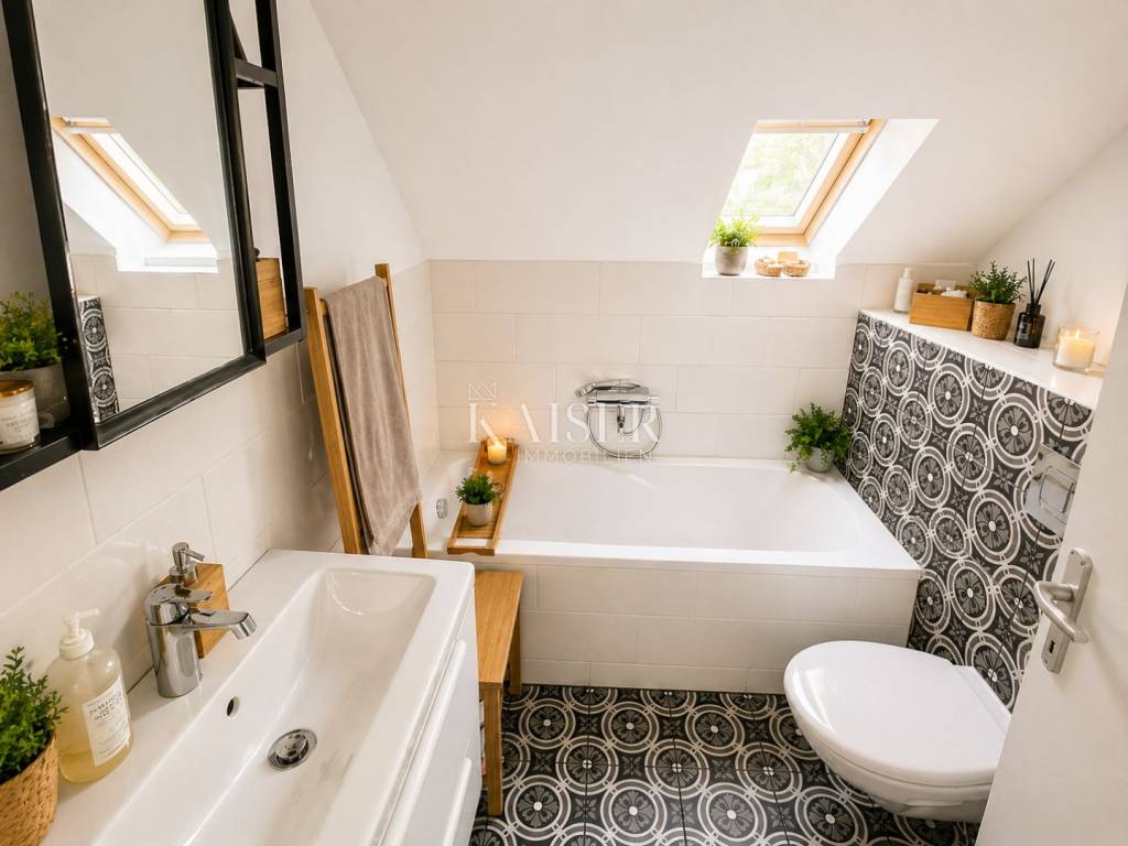 The layout comprises four rooms, kitchen, bathroom, separate WC, two hallways and staircase area, allowing comfortable family living, an elegant holiday residence or a high-performing rental investment.