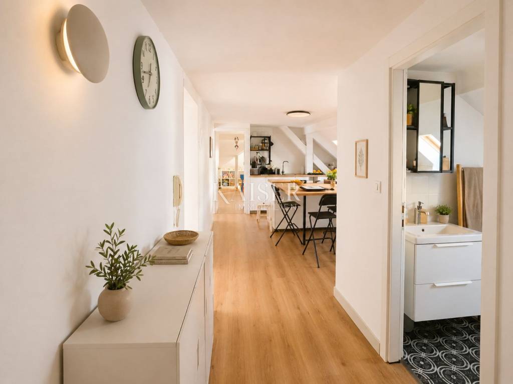 Filled with natural light, the apartment enjoys an inviting atmosphere enhanced by charming rooflines and beautiful views towards the sea. The upper-floor position provides peace, privacy and a unique sense of character rarely found in newer developments.