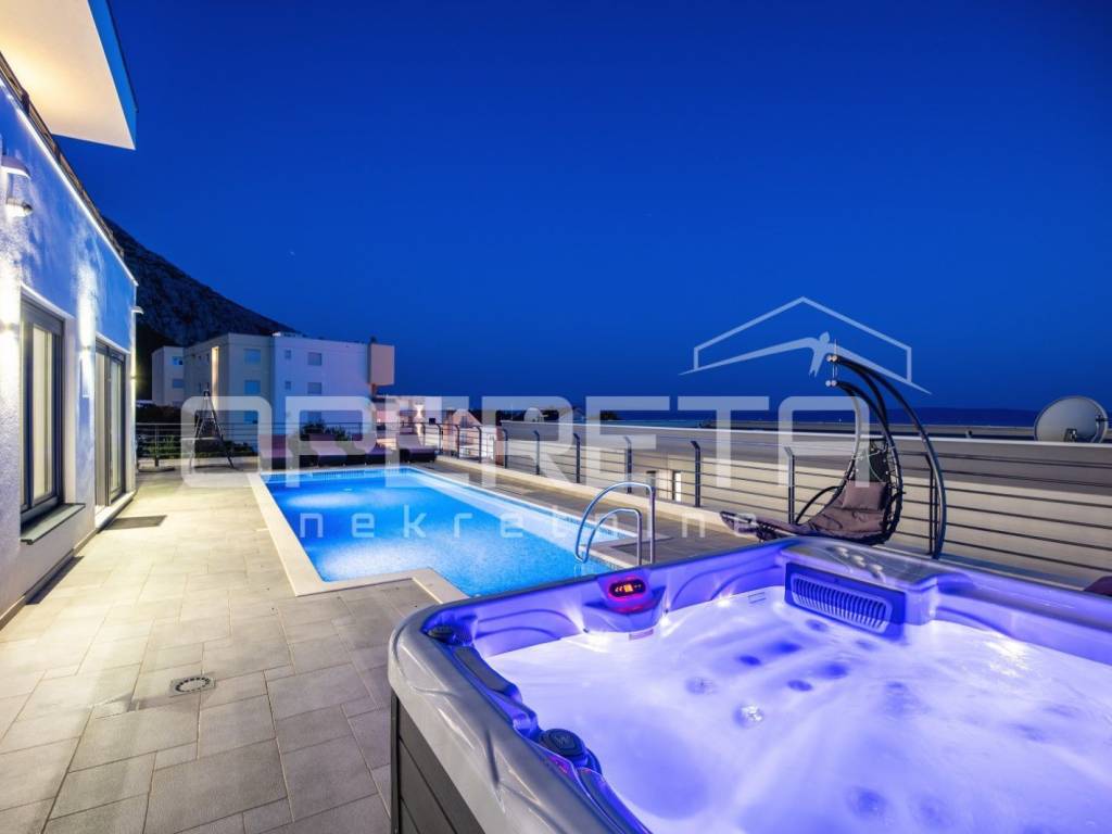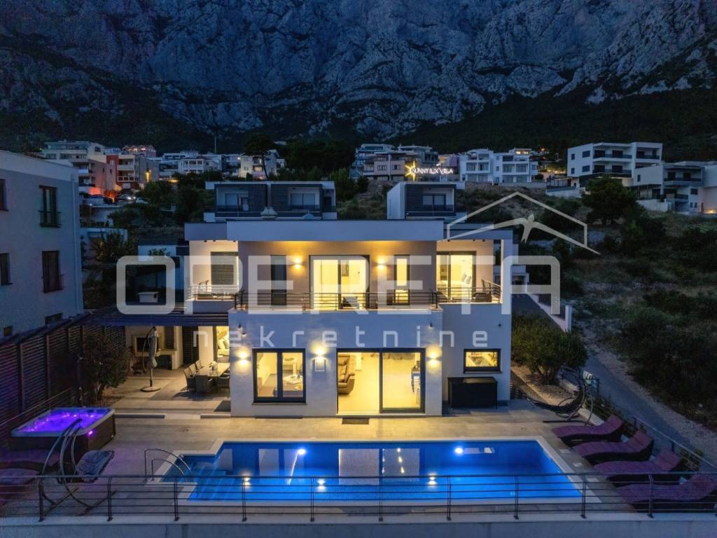 In the very heart of Makarska, on a prestigious location between the sea and the mountains, lies this exceptional luxury villa that blends contemporary design, comfort, and Mediterranean ambience. From the very first moment, it captivates with panoramic views of the sea, the city of Makarska, and Mount Biokovo, creating a unique atmosphere perfect for relaxation and a sophisticated lifestyle.