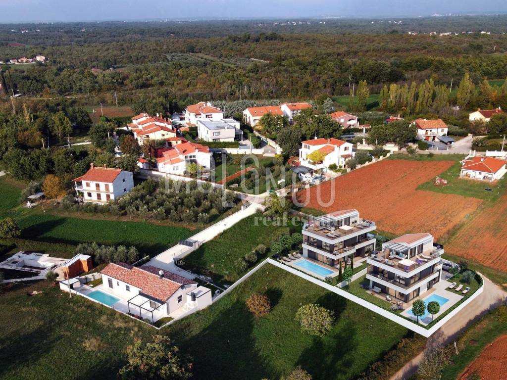 At the peak of beauty, in a small paradise not far from the idyllic town of Poreč, discover a unique villa that captures hearts with its timeless luxury and subtle design. Perfectly blended into the natural environment, this impressive house spreads over 220 square meters on a plot of 548 square meters, providing you with a refined space for exceptional and luxurious living.
