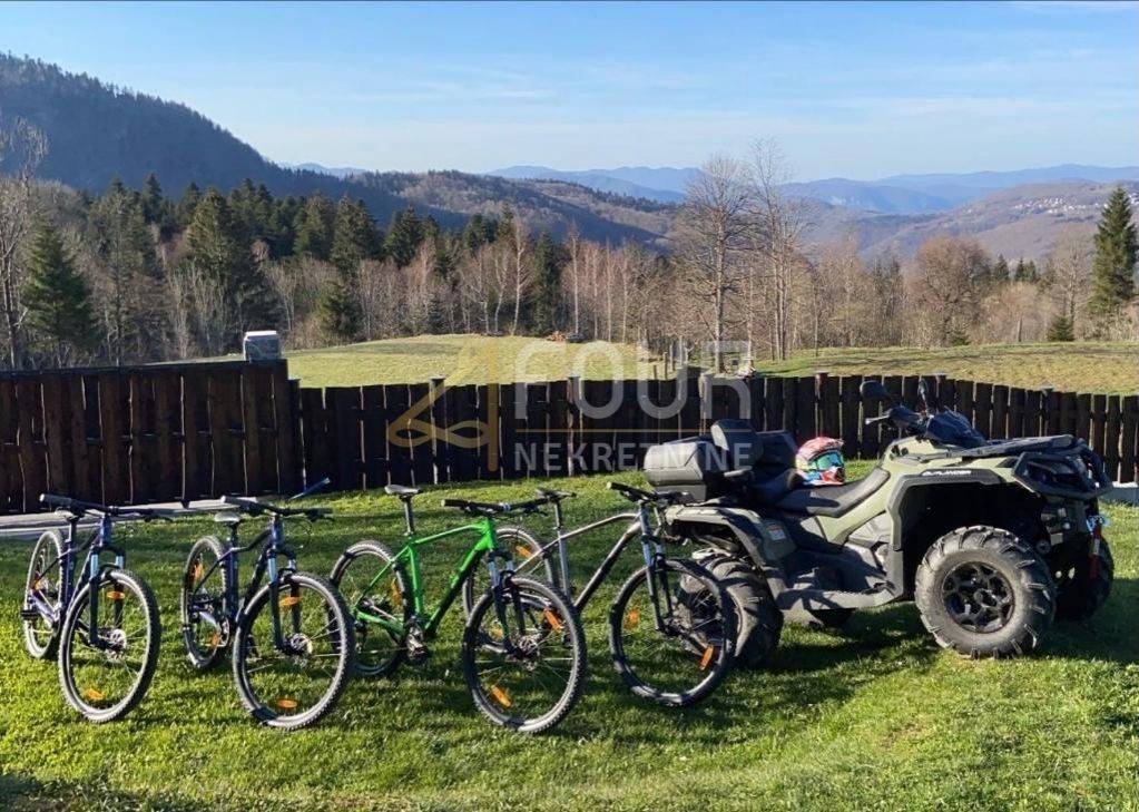 Property includes multiple buildings, and from every corner of the spacious yard there is a beautiful panoramic view of the hills of Gorski Kotar and the distant Alps. The property has a total area of 2,823m2 and includes a romantic log cabin, heated pool, covered terrace with a fireplace, A-cottage for wellness activities, a two-story stone house, and two additional buildings.