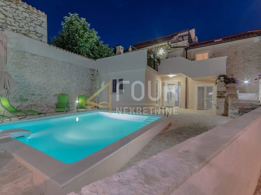 A beautifully decorated stone house with a swimming pool and a beautiful view of the sea is for sale, located in the vicinity of Zadar.