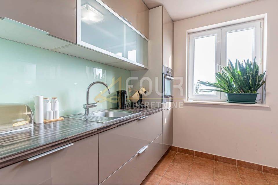 Apartment 1, covers an area of 78.01m2 and consists of two bedrooms, a living room, a kitchen, two bathrooms, a storage room and a balcony with a beautiful sea view. The heating is gas central with a thermostat, and the space is additionally equipped with an air conditioner.