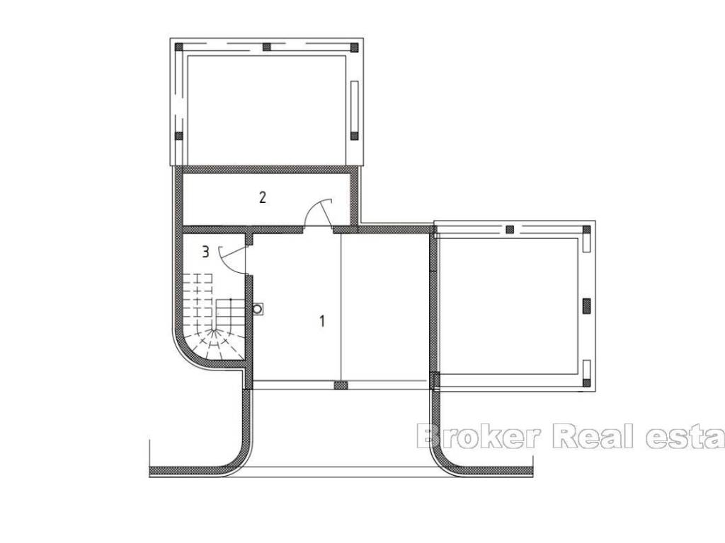 Villa K2 with a swimming pool of 35m2, located in an attractive complex of five villas, in one of the most attractive places along the coast. Built on a plot of 405 m2, a minute from the sea and the beach. It consists of two floors with a total living area of 165.50 m2, a technical room of 10 m2 and a basement area of 49.80 m2. In the basement there is a double garage and a technical room. On the ground floor there is a guest toilet, two bedrooms with a wardrobe and a bathroom, and an open concept gallery design at a height of 6m intended for the kitchen with a dining room and a living room. On the first floor there are two comfortable bedrooms with a wardrobe and private bathrooms. On the landscaped garden there is a swimming pool with a sunbathing area ideal for summer outdoor gatherings. Quality materials were used in the construction and special attention was paid to large sliding walls that allow plenty of natural light, ensuring optimal comfort throughout the year. Apart from a peaceful family life or vacations, it offers an excellent opportunity for tourist rentals. Split Airport is 25km away, while the center of Rogoznica is only 5km away.