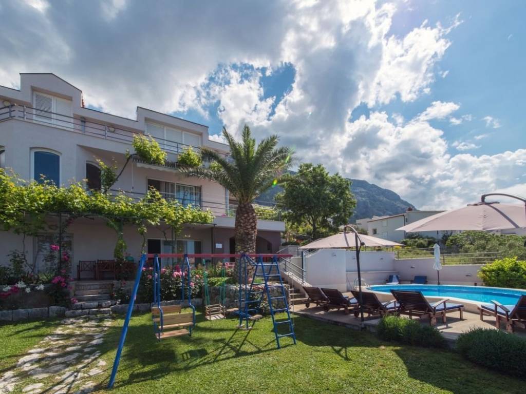 For sale is a holiday villa located near the sea with a view of the sea. It was built on three floors. It is located on the south side and is surrounded by a lot of greenery, orchards and flower gardens with quality garden furniture and is thus partially fenced off from the view of the neighbors with a peaceful environment. It consists of 5 rooms, 7 bathrooms, gym and sauna, swimming pool, jacuzzi, tavern with a fireplace for preparing traditional dishes, room for entertainment and numerous balconies and terraces. In the basement there are 2 bedrooms, 4 bathrooms and a living room/kitchen with 1 balcony and a gym, sauna and tavern. On the ground floor there is a living room/kitchen, a bathroom, 2 balconies and 1 open, partially covered terrace with an open view of the sea. On the first floor there are 3 bedrooms and two bathrooms with underfloor heating, 2 balconies and 1 open terrace with an open view of the sea. The villa has installed solar panels and a system for central water heating, which provides low electricity costs. This modern villa is air-conditioned and is sold with an equipped and furnished interior and exterior rich in greenery, swimming pool with a heating and cooling system, an outdoor jacuzzi for relaxation and a large tavern that can be used for organizing celebrations. There is also an outdoor parking space for five vehicles on the lot. The property is an excellent choice due to its southern location/Mediterranean climate, heavenly view of the sea, solar energy and central water heating, proximity to numerous beaches and an urban lifestyle with tourist content: cafes, Mediterranean restaurants and other amenities. The distance from the nearest larger city of Split is 54 km and Split airport of 67 km and other nearby cities under UNESCO protection.
