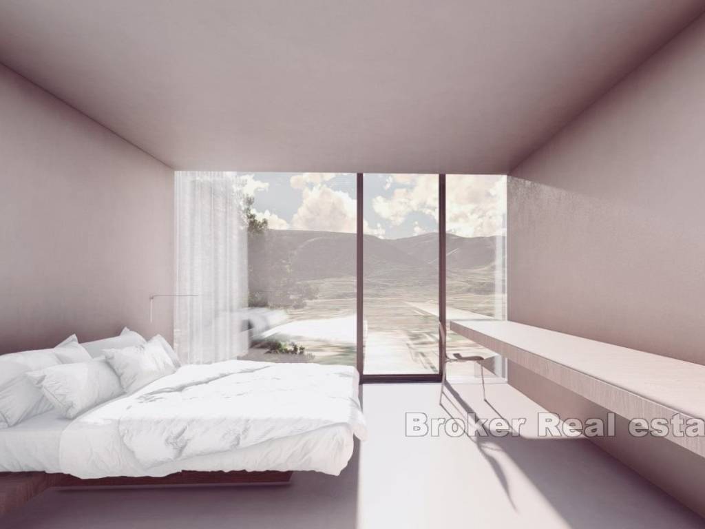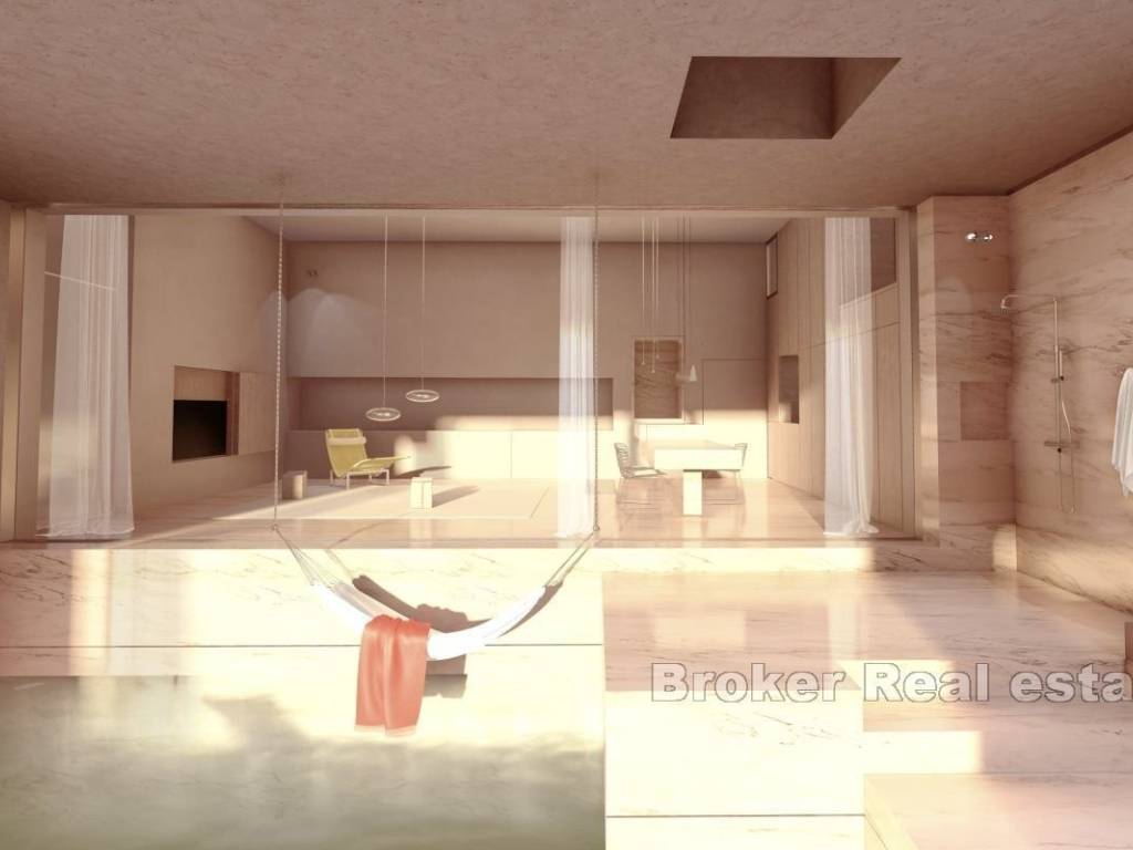 Jedinstveno građevinsko zemljište koje se smjestilo svega 130 metara do mora i centra mjesta. Zemljište se nalazi u Jelsi, koja se smjestila na sjevernoj strani otoka Hvara. Na zemljištu se nalazi sva potrebna infrastruktura, te je zemljište u potpunosti očišćeno. Projekt koji je zamišljen na zemljištu s ishođenom građevinskom dozvolom, sastoji se od tri etaže te je južne orijentacije, što mu pruža pregršt svjetla i pogled na more i centar mjesta. Također važno je napomenuti da je projekt napravljen od strane cijenjenog hrvatskog arhitekta. Projekt vile sastoji se od tri etaže – suterena, prizemlja i prvog kata. U suterenu nekretnine nalazi se vinski podrum, media soba, teretana, te tehnička soba s bazenskom opremom. Na prizemlju nekretnine nalazi se ulazni hodnik, otvoreni prostor gdje su se smjestili studio, kupatilo, kuhinja, blagovaonica i dnevni prostor iz kojeg se izlazi direktno na terasu od 30m2 i prostrani bazen površine 26m2 koji su natkriveni. Na prvoj etaži nalazi se praonica, te četiri elegantne spavaće sobe, svaka sa svojim kupatilom, te jednoj od soba pripada walk-in prostorija koja je predviđena za garderobu. Također u sklopu vile, nalazi se garaža za četiri automobila, te se uz vilu može napraviti dodatni objekt. Lokacija zemljišta omogućava lagan pristup centra mjesta, plažama i moru. Na otoku su dostupni svi osnovni sadržaji potrebni za svakodnevni život. Zemljište posjeduje uredne vlasničke papire i idealno je za izgradnju nekretnine, bilo kao investicija ili kao mjesto za odmor.