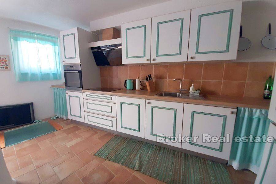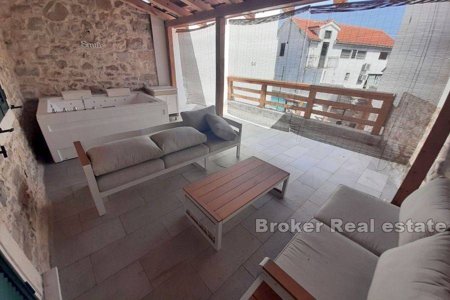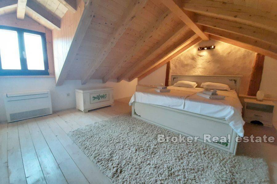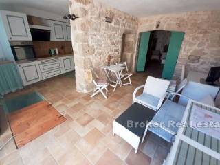 Renovated indigenous stone house, with swimming pool, in a row, total living area of ​​170 m2, on a plot of 220 m2. The house is located in the center of a small picturesque town on the island of Hvar, 3.5 km from the sea. Completely renovated two years ago, in retro style, the house is an ideal place for vacation. The entire plot is surrounded by a high stone wall, which allows the users of the villa complete privacy. In the yard there is a swimming pool and a barbecue area with a covered terrace. From the courtyard you enter the ground floor of the villa, where the kitchen and dining room are located. Below is a spacious and beautifully decorated living room, entirely in stone. On the ground floor, there is also a guest toilet and stairs that lead to the den converted into a relaxation room. There are two bedrooms and a bathroom on the first floor, and this floor also has a large terrace with a built-in jacuzzi and a small summer kitchen. On the second floor is the largest room in the house with an en-suite bathroom. All floors are connected by internal stairs. This elegantly renovated old stone house will not leave anyone indifferent. Located in the center of town, with good access and additional facilities (shop, coffee bar, playground), the villa represents an excellent offer from this part of the island and a perfect opportunity to enjoy with family and friends, and as a business property in the form of rental. Larger towns on the island (Stari grad, Vrboska, Jelsa) with their beaches and additional facilities are located a short distance away by car, which makes this offer ideally rounded off.