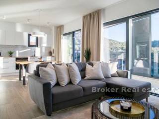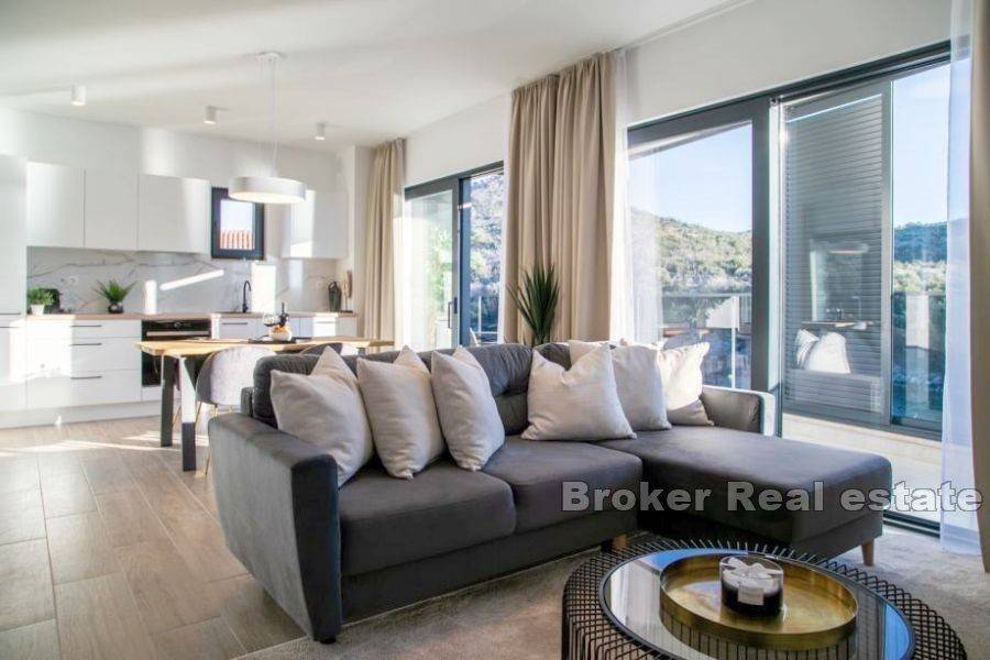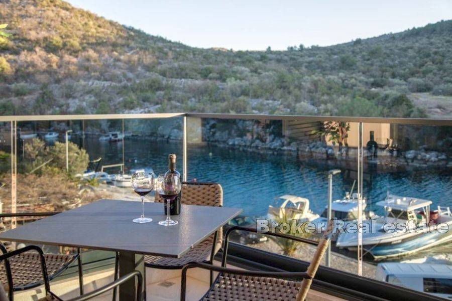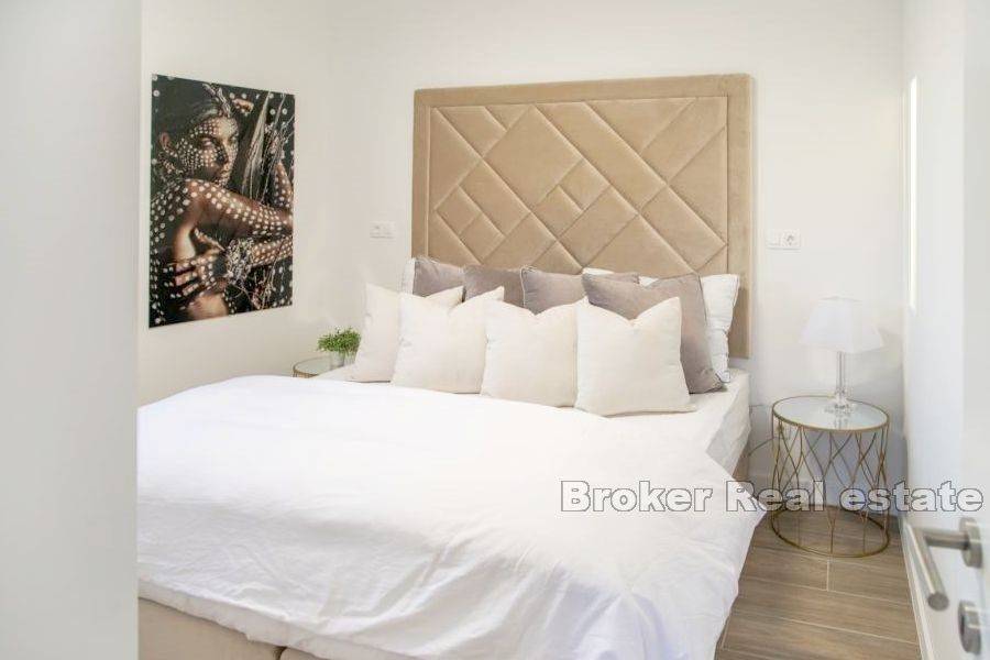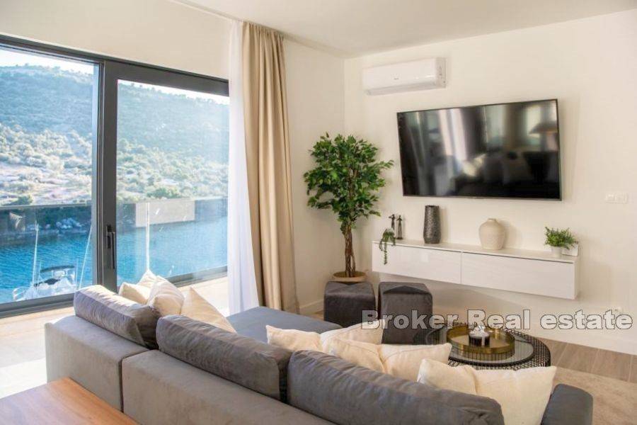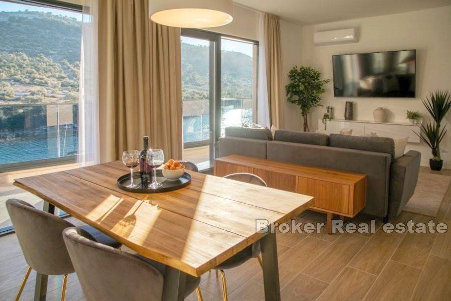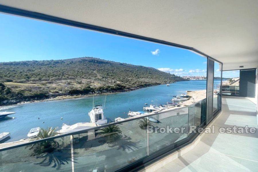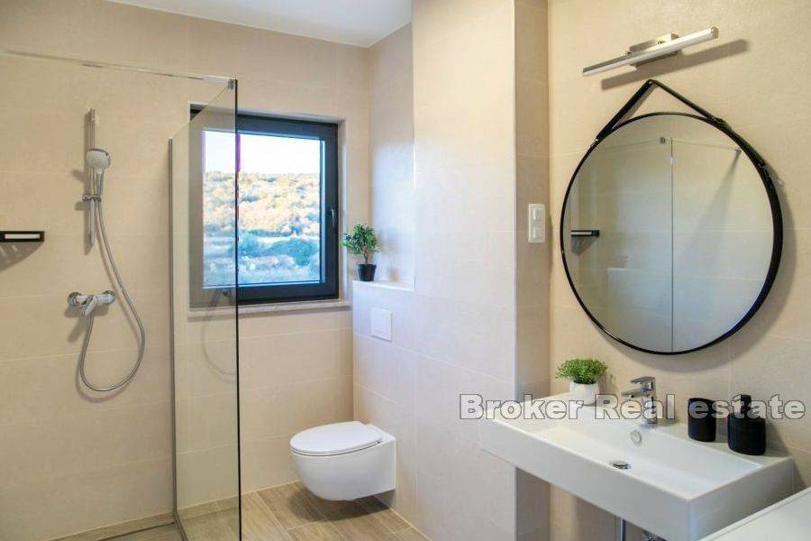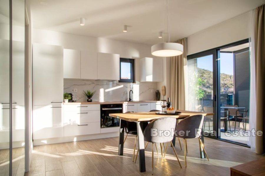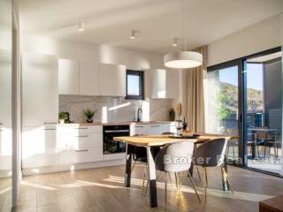 A building with 6 apartments is under construction in a place near Rogoznica, first row to the sea. The building consists of a high ground floor and 2 floors. There are two apartments on each floor. The apartments on the high ground floor are raised in relation to the road to give the impression of a floor with a private garden. The apartments have a modern layout with lots of natural light, and high quality materials were used in the construction. The building is 10m from the sea and less than 100m from the beach. The center of Rogoznica is 2 km away. There is one parking space available for each apartment. Apartments for sale: HIGH GROUND FLOOR S1 (west) 121, 11 m2: located on the high ground floor, orientation south-west-north. This apartment has a kitchen, dining room, living room, bedroom, hallway and bathroom, as well as an outdoor terrace and garden. The total living area is 60.71 m2. The apartment has outdoor parking and a garden of 63 m2. The price of the apartment is 303,505 €. SECOND FLOOR APARTMENT S4 – (east) 89.20 m2: located on the first floor, south-east-north orientation, and consists of two bedrooms, kitchen with dining room and living room, bathroom, and two terraces of a total of 23 , 07 m2 with a beautiful sea view. The total calculated area is 67.66 m2. The price includes an outdoor parking space. PRICE: 406,020 €.
