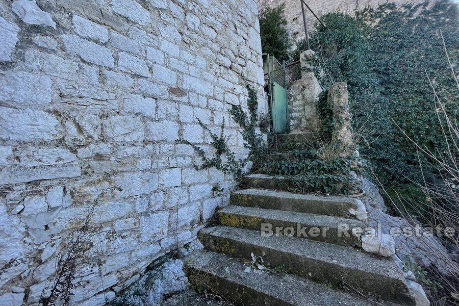 Traditional, Dalmatian, stone house located in the town of Šibenik, at the foot of the fortress Sv. Mihovila, for sale. The house dates from the end of the 19th and the beginning of the 20th century and has an ambient value. The house has three floors, and next to it there are two stone auxiliary buildings next to the external staircase. The floors, stairs and roof are wooden constructions and need a complete renovation, both inside and out. The part of the interior of the neighboring house adjacent to this, which is in the same ownership, can be functionally connected inside the building. There is a conceptual design in accordance with the special conditions of the conservator that offers the possibility of restoration. It is also possible to upgrade the residential building to use part of the attic. Given its location, climate, proximity to facilities and the protection of UNESCO under which it is located, it is an excellent choice for personal use and tourism purposes.