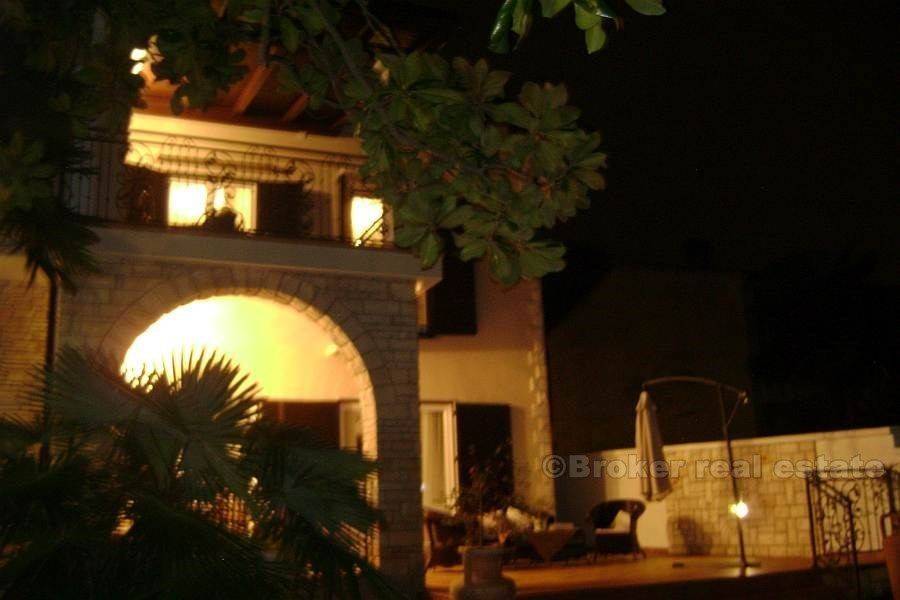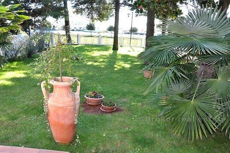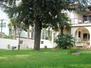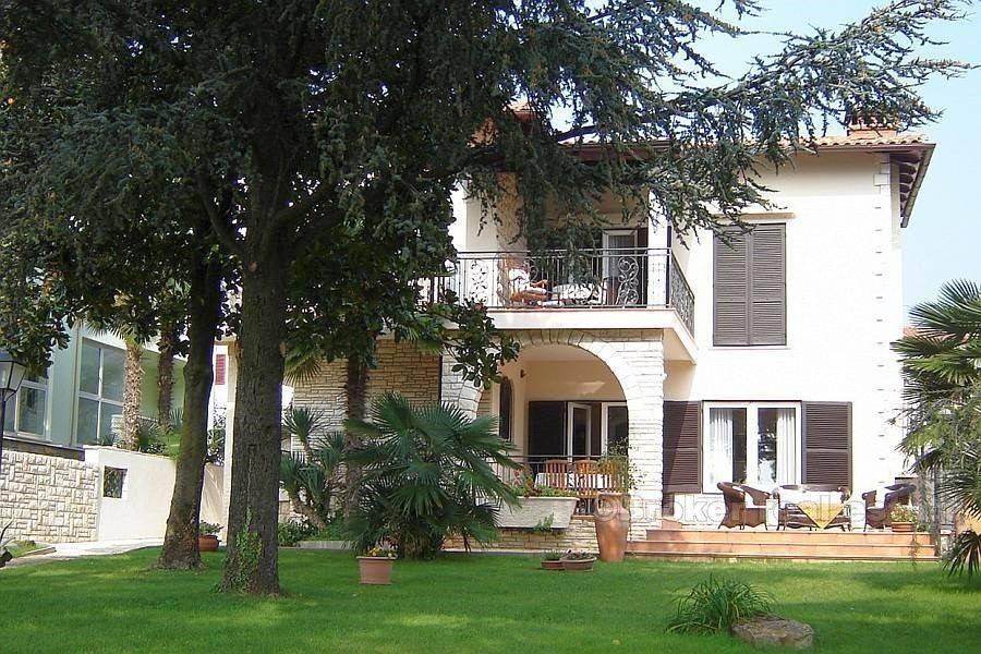 A traditional Istrian villa in an exclusive location, only a few meters from the sea, with open sea-view. The villa is situated in the residential and peaceful part of the town, and the privacy is provided by the large garden in Mediterranean style with pine trees, magnolia plant, agava plants and palm trees. It is the ideal property for the yacht owners or the sailing enthusiasts, since the ACI Marina is located right in front of the villa. The villa is of the surface of 480 sq m and is situated on the land plot of the surface of 1000 sq m. It was built in the traditional Istrian and Mediterranean style, with high construction standards, with thick stone walls, high ceilings, spacious rooms. It was completely renovated in 2009, keeping many of the traditional characteristics of construction with stone and marble, successfully combinig the traditional with the modern. All the installations are new. The main residence is facing south, with the open sea-view, and extends across two storeys. On the ground floor there is a spatious open plan living room with a dining room, with the exit to the large terrace and the graden, and with a sea-view; a large central kitchen; a bathroom with a shower stall; a lobby with the office space; a bedroom (approx.14 sq m) with a small bathroom; the the spa space that has a separate entrance, with the gym, jacuzzi, sauna and bathroom; a summer kitchen and a laundry room connected by the separate exit with secluded garden space on the west side of the villa, where there is a big marble and wooden table and a stone wood-burning pizza oven, ideal for the barbecue and garden party; and 2 completely separated apartments for guests,which have the separate entrance from the north side of the property. The staircase made of oak wood leads to the upper floor from the lobby, and opens to the gallery which is used as an additional living area with LCD SAT TV, and leading to 4 large bedrooms and 2 bathrooms. All the bedrooms have the exit to the terraces with the seating space. the central heating and cooling are available in all the rooms. The floors in all the rooms are made of oak wood, while the part of the living room and the lobby is covered with the traditional Italian marble. The terraces, bathrooms and kitchens are covered with beautiful Italian ceramic tiles. The property has two entrances; the central entrance through the Mediterranean garden from the south and the back entrance from the north leading to the private parking lot (for 3 vehicles) and to the entrance to 2 apartments.The privacy of the property is also ensured by the beautiful handmade iron fence, and the additional security is provided with the door phones on the entrances. Villa is located only 150 m from the various services and facilities, like shops, restaurants, hotels, beaches, tennis courts, parks for children, and the old part of the town. There is also a new golf course nearby, as well as the other sports services: tennis, diving, sailing, riding etc. The international airports are nearby: 50 km Trieste (Italy), 70 km Pula, 110 km Rijeka, 150 km Ljubljana (Slovenia), 270km Zagreb.