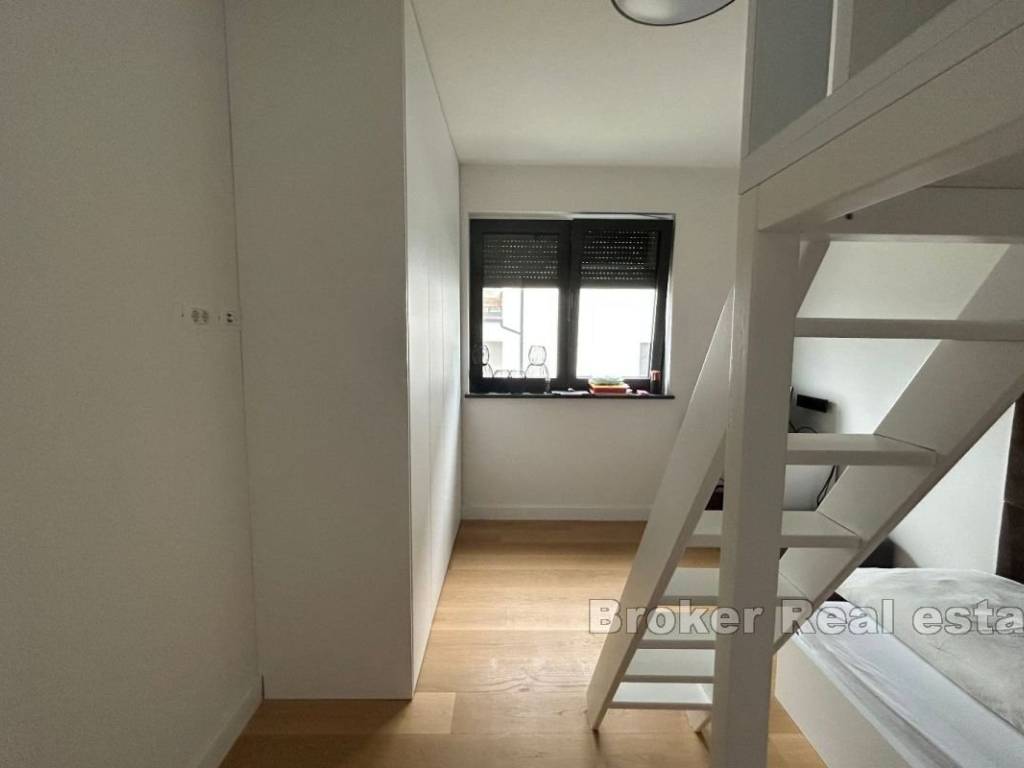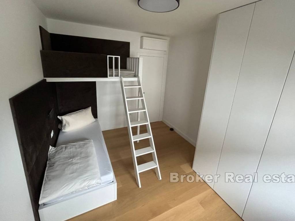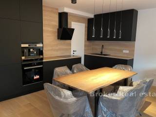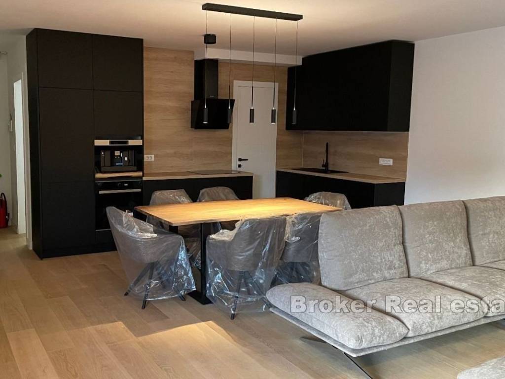 Modern apartment for sale located not far from popular beaches. The total living area of 78 m2 is located in a luxurious new building with an elevator and a panoramic view of the sea. The apartment is located on the first floor and consists of an entrance hall, kitchen and dining room, living room, bathroom, engine room and two bedrooms. The living room opens onto a terrace with a relaxing view of the surrounding beauty. Equipped with the highest quality materials and appliances, this apartment has Daikin heat pumps and air conditioning, high-quality oak parquet and top-quality carpentry. For additional comfort, the apartment includes two garage spaces and a storage room. The property is located in a very attractive location, close to all important facilities such as shops, schools and public transport, which makes it ideal for a family or as a rental investment.