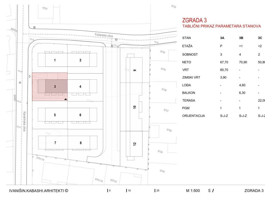U okruženju u kojem dominiraju manji objekti, , blizine tramvaja 2min, škole, fakulteta, bolnice, vrtići i ostalih sadržaja koja su potrebna i po mjeri mlade obitelji potrebnih za moderno stanovanje.