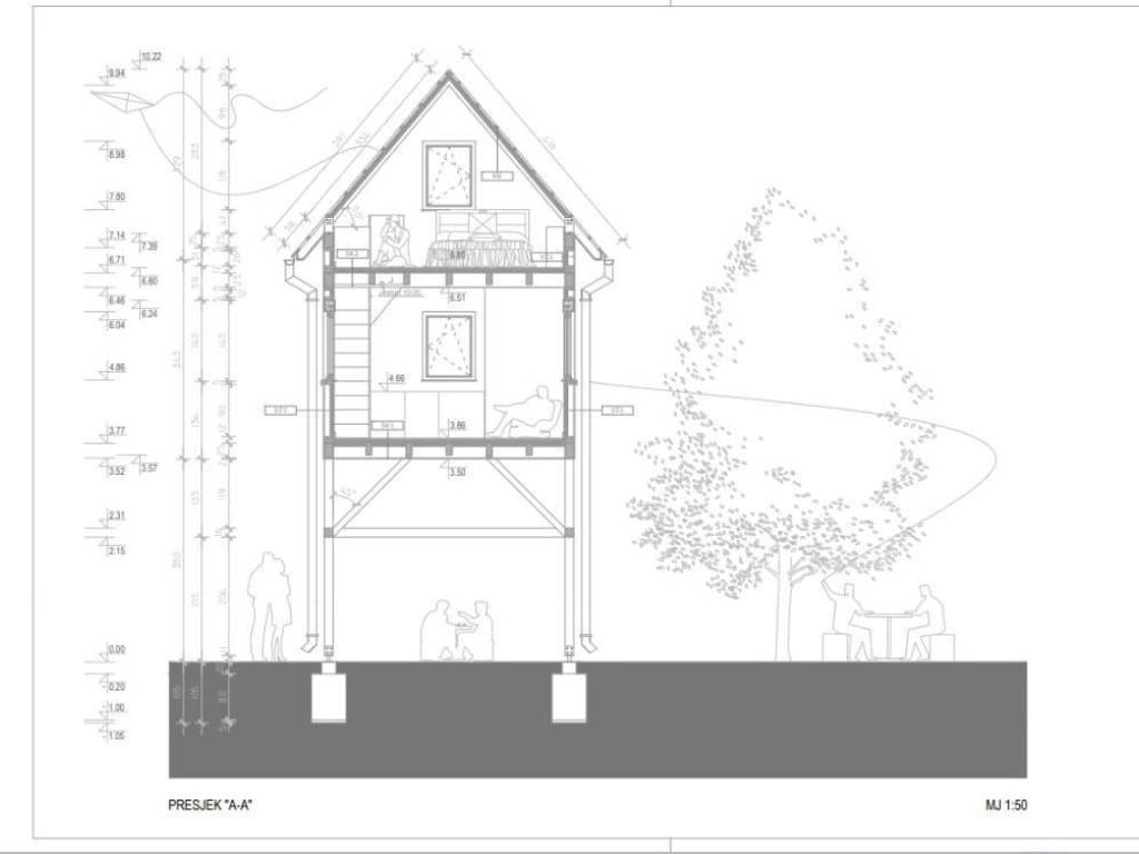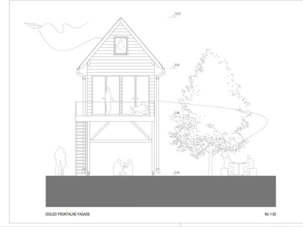 Za ovu parcelu, vlasnik je izradio arhitektonski projekt za kućicu na stablu, što omogućava brzi početak izgradnje.