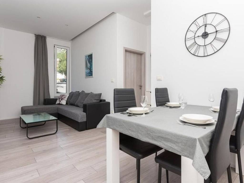 For sale is a gated holiday villa, an exclusive property with a panoramic view of the crystal-clear sea, located near the town of Makarska, between Omiš and Split. Positioned on the southern side, it exudes the highest comfort, modern interior, and elegant design. It offers an ideal, modern ambiance with a unique view of the Mediterranean coastline. With great attention to detail in both interior and exterior, modern technical equipment, the latest construction materials, and a touch of glamour, this villa provides a luxurious retreat for any family. It is built on two levels. It consists of 2 living rooms/kitchens, 4 spacious bedrooms, 2 bathrooms, a pool, and high-quality garden furniture with a barbecue for preparing delicacies, an outdoor kitchen, a garden, private parking, a balcony, and an open, partially covered terrace. The ground floor features a spacious living room for evening gatherings, a dining area, and a kitchen from which you can step out onto the partially open terrace for relaxation by the pool. There are also two elegant bedrooms and a bathroom with a shower. On the first floor, there is a living room/kitchen, two spacious bedrooms, and one bathroom with a shower. Each unit (ground floor and first floor) has its own outdoor terrace. The villa is fully air-conditioned. In front of the property, there is private parking for three vehicles, and on the other side of the villa, there is a heated saltwater pool with a view of the islands and olive groves, a garden with a children’s playground and sunbeds, quality garden furniture with a barbecue, and a modernly designed outdoor kitchen. The property is sold fully equipped and furnished with high-quality interior and exterior (household appliances, flat-screen TVs, LED lighting, automatic cooling system, etc.). The villa has top-notch thermal and sound insulation, glass railings on the balconies, and high-quality ceramics. It is highly rentable and has exceptional tourism potential. The price of this villa is not fixed. This property is a unique choice due to its southern position/Mediterranean climate, panoramic view of the clear sea, the architecture of the building, and numerous sandy beaches nearby. The location is 50 km from the nearest larger city, Split, and 70 km from Split Airport.