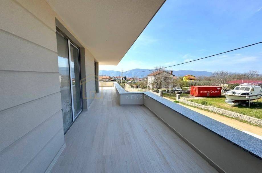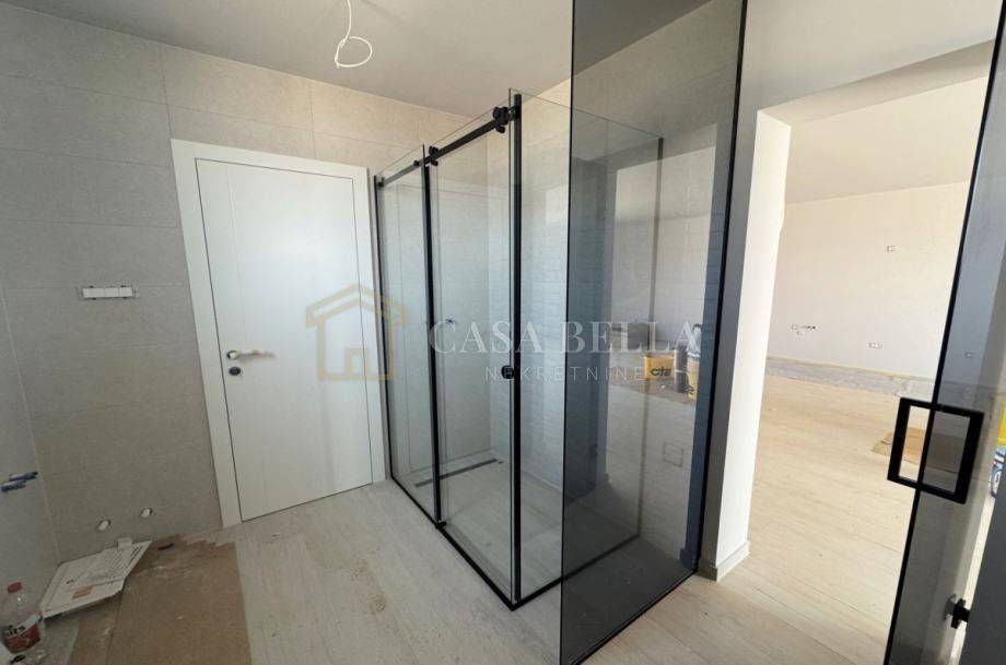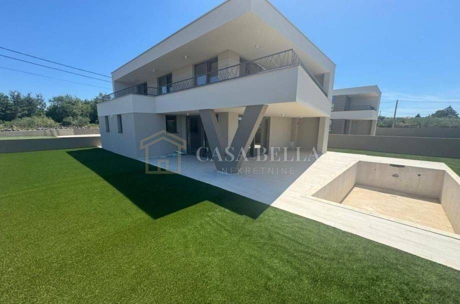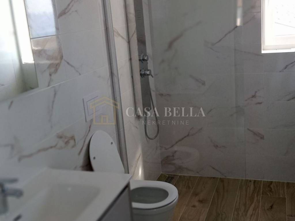 The real estate agency Casa Bella offers a new urban villa in the municipality of Dobrinj. The house is finished and has all the necessary amenities such as tiles and parquet flooring. The new owner only has to choose and bring his own furniture. On the ground floor there is a living area with kitchen, living room and dining room, laundry room and toilet. On the first floor there are two bedrooms with en-suite bathrooms, balconies and a separate terrace. On the second floor there is a large room (which can be converted into two rooms at the owner's request, as we have two doors), a bathroom and a large terrace facing north. From this terrace you have a beautiful view of the sea, the entire Liburnian coast, Rijeka and the Crikvenica Riviera. The plot is 700 square metres and there is a possibility to build a swimming pool and an additional outbuilding (for a garage, hobbies, etc.). The house is built to modern standards, including triple glazing on the windows, aluminium shutters and obligatory walk-in showers.
