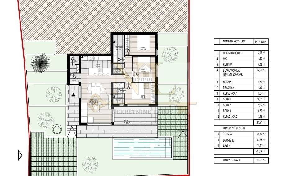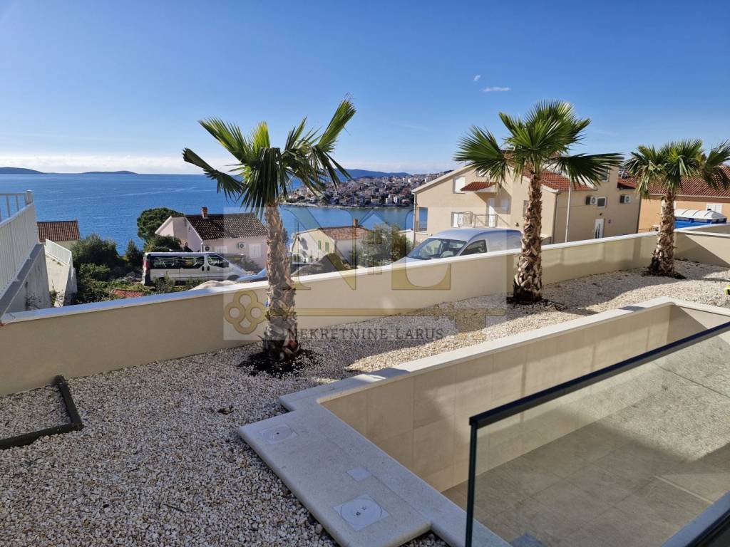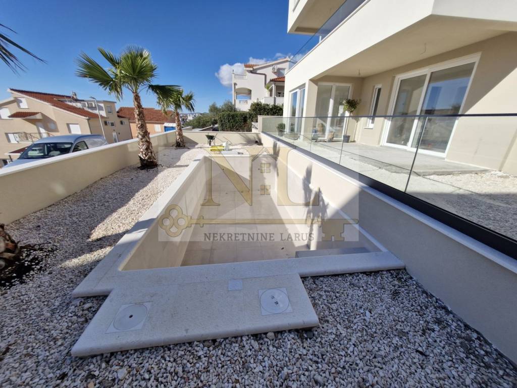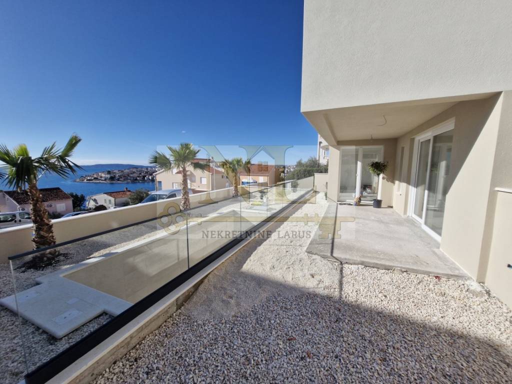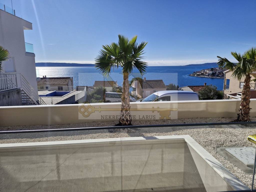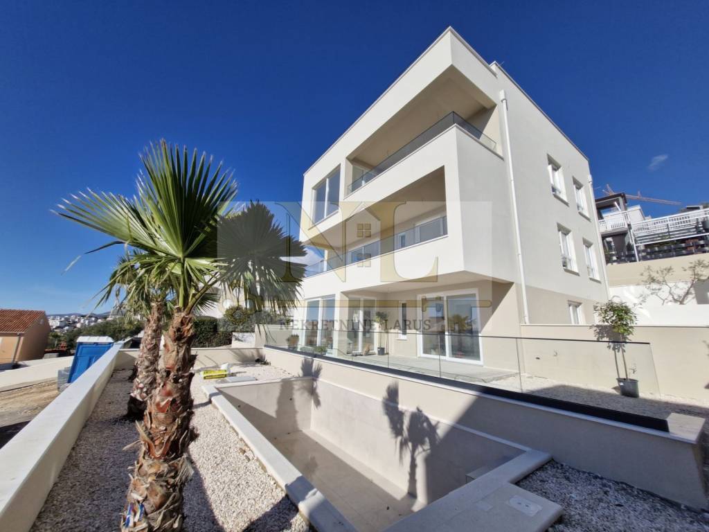 Luxury apartment on the ground floor S1, private pool We are selling a luxury apartment S1 on the ground floor of a small residential building with a private pool, 200 meters from the sea and beach, Okrug Gornji, Čiovo, south side. The building is south-facing, on a gentle hill from which there is a beautiful view of the sea and the nearby islands of Brač, Hvar, Šolta. The apartment has a private pool, two parking spaces and a large garden. Apartment S1 ground floor consists of an entrance hall with toilet, 3 bedrooms, 2 bathrooms, laundry room, living room with kitchen, covered terrace, courtyard, garden and private pool. The apartment has two parking spaces. Surfaces: - interior area of the apartment: 83.71 m2 - outdoor area: 251.59 m2 - terrace 30.13 m2 - yard 202.35 m2 - swimming pool 19.11 m2 Total interior and exterior area: 333.3 m2. Building completion 01/2026 Virtual tour: https://www.kuula.co/share/collection/7bQ1R?logo=1&card=1&info=0&logosize=152&fs=1&vr=1&sd=1&initload=0&autorotate=0.43&thumbs=1 Video: https://vimeo.com/1073023800/072cf906db?ts=0&share=copy https://vimeo.com/1073024449/10700eaeeb?ts=0&share=copy