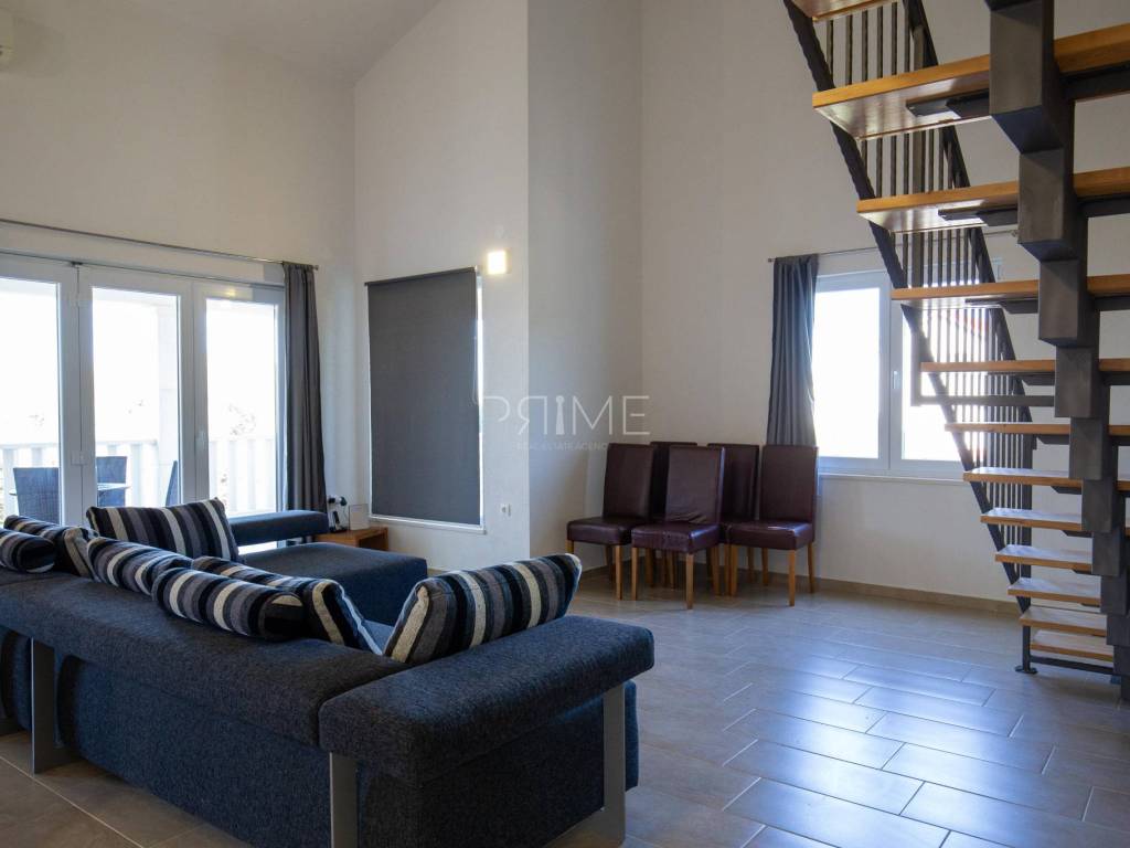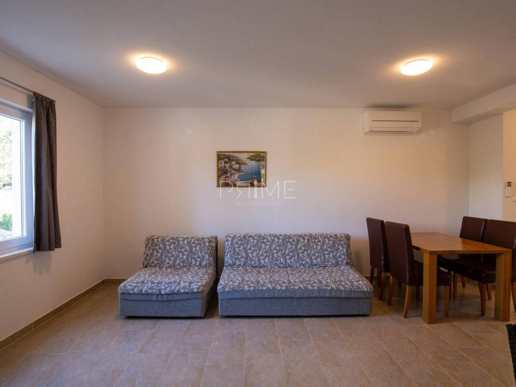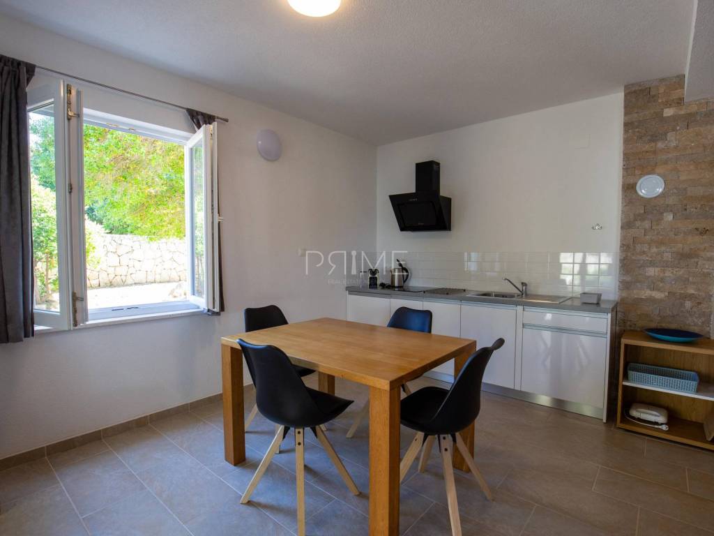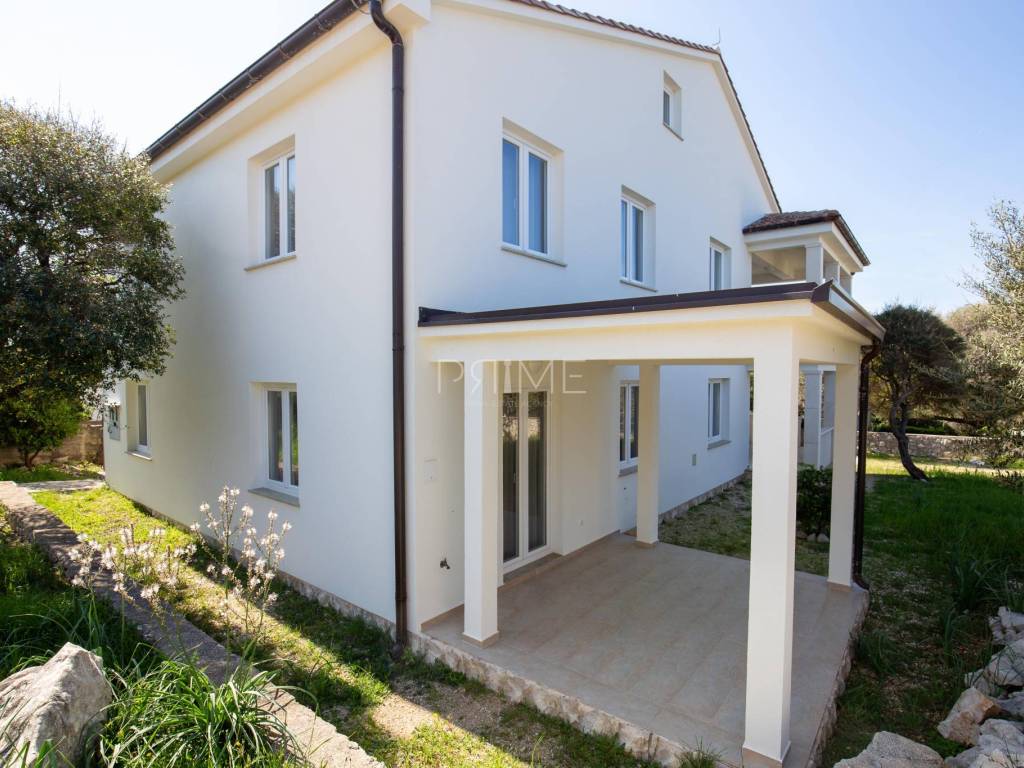 Apartmanska kuća površine 278 m2 sastoji se od 3 stambene jedinice (odvojeni priključci vode i struje). U prizemljiu se nalaz dvije stambene jedinice, svaki stan ima 60 m2 dok se na prvome katu nalazi stan površine 128 m2. Svi stanovi imaju odvojene ulaze. Kuća se nalazi na parceli površine 695 m2. Okućnica je prekrasno uređena autohtonim mediteranskim biljem (masline, smokve, kameni zid oko cijele parcele..). Izgrađena je 2011 godine i ne zahtjeva nikakva ulaganja. Prodaje se potpuno namještena i opremljena. Nalazi se na fantastičnoj lokaciji udaljenoj od mora i plaže sam 130 metara. Udaljenost od centra Novalje je 8 kilometara. Više informacija dajemo na upit!