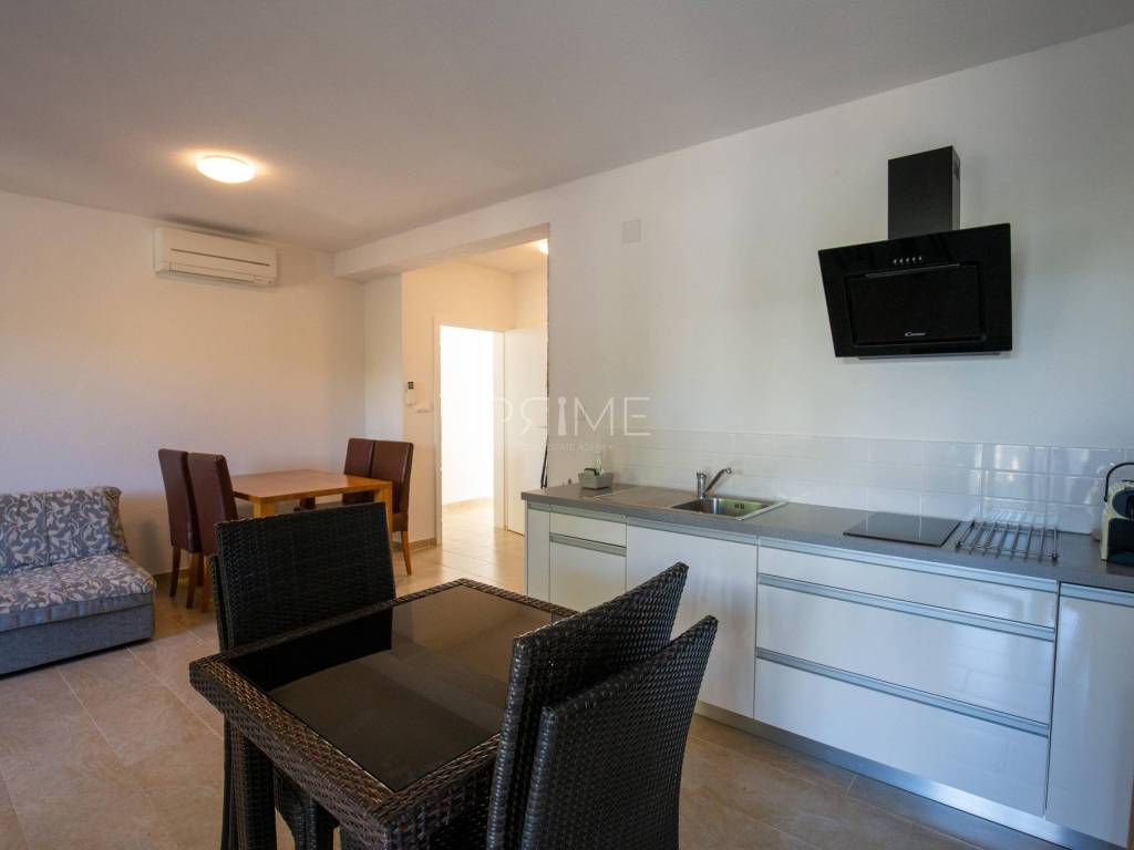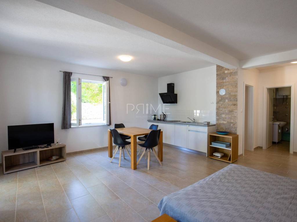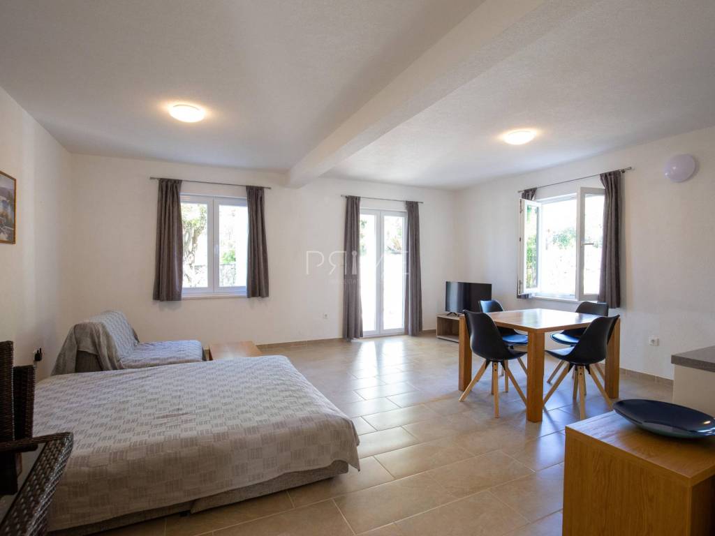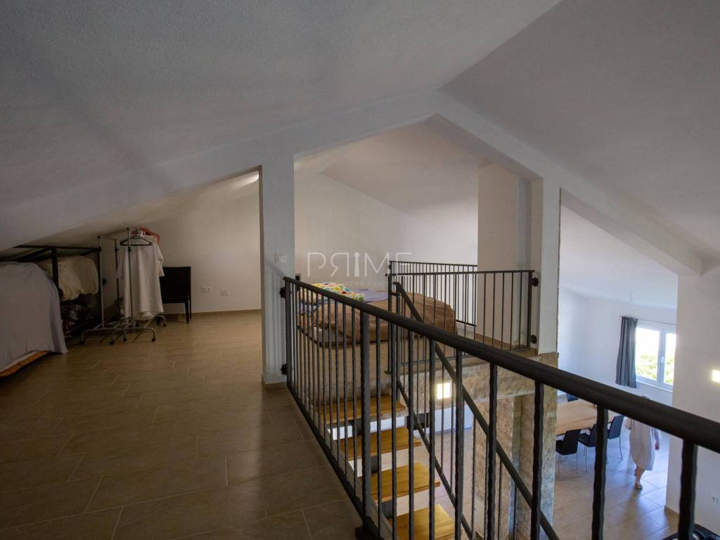 Apartmanska kuća površine 278 m2 sastoji se od 3 stambene jedinice (odvojeni priključci vode i struje). U prizemljiu se nalaz dvije stambene jedinice, svaki stan ima 60 m2 dok se na prvome katu nalazi stan površine 128 m2. Svi stanovi imaju odvojene ulaze. Kuća se nalazi na parceli površine 695 m2. Okućnica je prekrasno uređena autohtonim mediteranskim biljem (masline, smokve, kameni zid oko cijele parcele..). Izgrađena je 2011 godine i ne zahtjeva nikakva ulaganja. Prodaje se potpuno namještena i opremljena. Nalazi se na fantastičnoj lokaciji udaljenoj od mora i plaže sam 130 metara. Udaljenost od centra Novalje je 8 kilometara. Više informacija dajemo na upit!