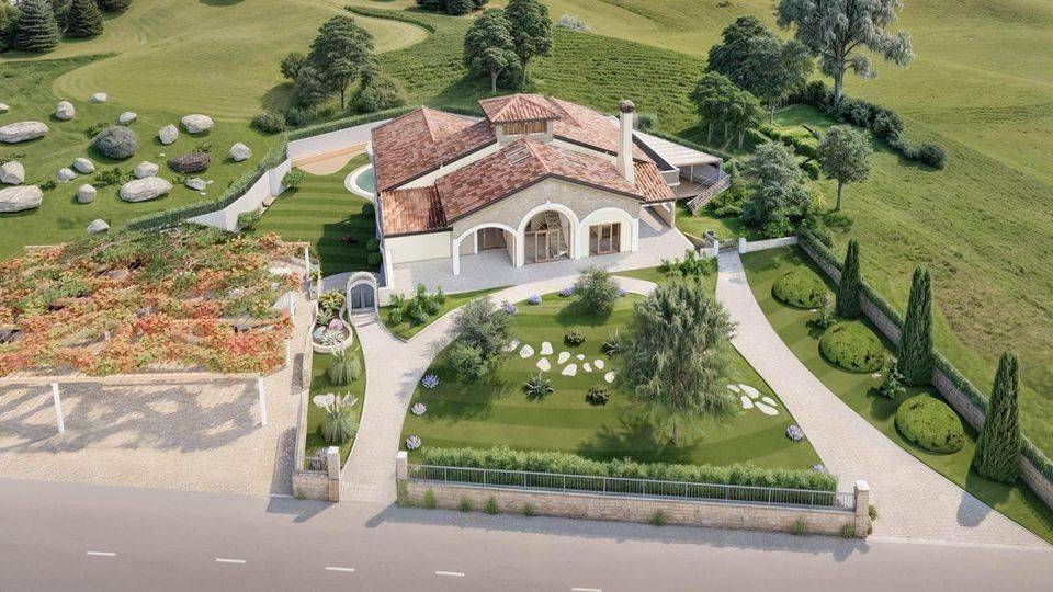 Prodaje se građevinski teren (mješovite i stambene namjene) sa započetom gradnjom vile s bazenom u prirodnom ambijentu Istre, u blizini Boljunskog polja, svega tri kilometara od Tunela Učka. Izgrađen je prvi kat ville od 440m2, a predviđena je gradnja drugog kata jednake površine.