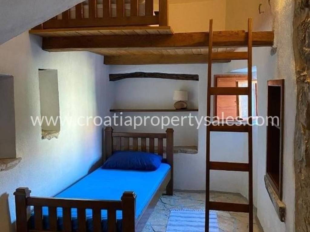 Beautiful renovated stone house with a swimming pool in the center.It consists of a ground floor and one floor. On the ground floor there is a kitchen with a wood-burning fireplace, a living room, a utility room for storage.The living room has an exit to an idyllic Dalmatian courtyard. On the first floor there are three bedrooms and a bathroom, as well as a terrace with a beautiful view.Furniture made of wood and stone details give this property a special warmth and charm.The swimming pool is located a few meters from the house, in a spacious courtyard.