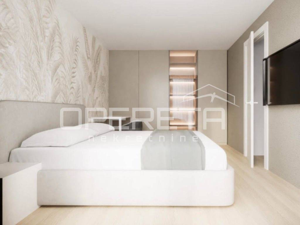 Sastoji se od ulaznog prostora, open space dnevnog boravka s kuhinjom blagovaonicom površine 28 m2, dvije spavaće sobe, dvije kupaonice, gostinjskog toaleta te dva balkona.