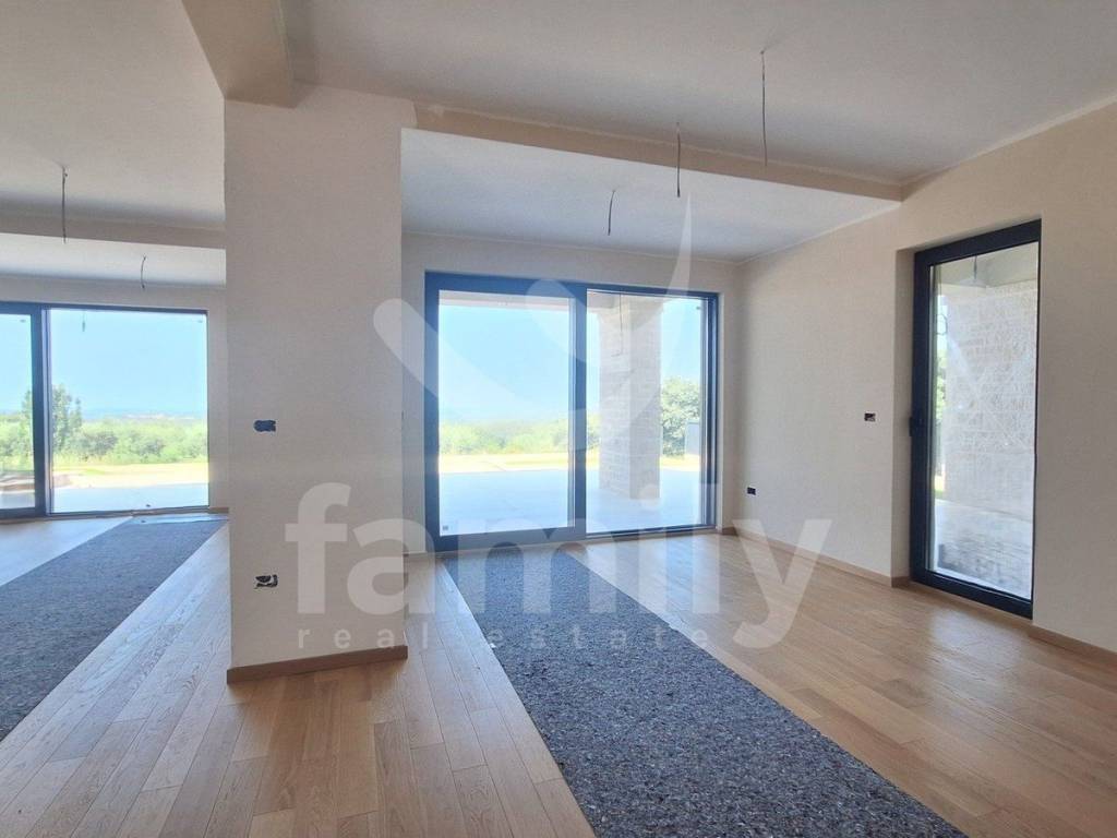 What makes Poreč so interesting is its rich cultural heritage, which bears witness to its turbulent history. The peninsula on which the old town of Poreč developed was first settled by the Illyrian tribe of Histri. However, it was given its current form by the Romans, who occupied it more than two millennia ago and named it Parentium. The historic core of the city still preserves its ancient form, and the two main streets still bear the same names as two thousand years ago, Cardo and Decumanu. The surrounding settlements of the city of Poreč offer the much-sought-after peace, surrounded by greenery, and breathtaking views.Not far from the city of Poreč, an imposing villa with a view of nature and the sea is for sale. It is located in a charming settlement with a panoramic view of the sea, the Alps and the surrounding area, surrounded by greenery, vineyards, olive groves, family houses and holiday homes, and was built to the highest standards for residential construction. The property's attractive exterior is perfectly integrated into the surrounding landscape, while the equally harmonious interior and harmoniously planned rooms are used. A large number of glass walls ensure maximum penetration of external light, which emphasizes the space and at the same time connects the interior with the exterior. The villa is designed as one residential unit spanning two floors.On the ground floor there is an open-concept living area that unites a living room with a two-sided fireplace, a dining room and a kitchen with exits to a covered terrace, a bedroom with its own bathroom and exit to a covered terrace, a guest toilet and a technical room. An internal staircase leads to the first floor, where there are three bedrooms with their own bathrooms and two covered terraces. Cooling and heating are provided by an underfloor heating system and Mitsubishi air conditioning units. Top-quality materials and appliances were used in the construction of this beautiful villa. The yard is landscaped and horticulturally decorated and fenced. The parking lot is private and also fenced. The video surveillance is in high resolution and an alarm system has been installed. Complete harmony is provided by a covered summer kitchen with toilet and storage and an overflow pool of 60 m² with a sunbathing area next to which is elegantly integrated a jacuzzi with an open fireplace from where a view of the greenery and the sea extends, creating a perfect place to relax. The villa offers a number of amenities such as electric shutters and blinds, underfloor heating, air conditioning in all rooms, a gallery living room with a hanging fireplace, and high-quality Italian ceramics. All this comes included in the fully equipped villa.The villa offers a number of amenities such as electric shutters and blinds, underfloor heating, air conditioning in all rooms, a gallery living room with a hanging fireplace, and high-quality Italian ceramics. All this comes included in the fully equipped villa.