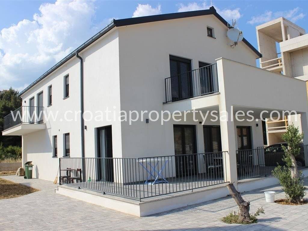 Beautiful family house a few minutes drive from the center of Split.This beautiful, well-built house consists of a basement divided into a technical room and 2 storage rooms that can be converted in the future according to the owner's wishes.On the ground floor of the house there is a large two-room apartment of 120 m2 and consists of an entrance hall, 2 bedrooms, two bathrooms, kitchen, dining room and living room facing southeast.From the living room there is an exit to a covered terrace intended for socializing.Internal stairs connecting all floors lead to the first floor where there are 2 spacious one-room apartments.All rooms inside the apartments have underfloor heating and air conditioning units are installed for cooling.The location of the building is ideal, it is about 80 meters from the beautiful pebble beach, while all the amenities necessary for life are nearby.Considering the area of the land, the house has enough outdoor parking spaces and there is also the possibility of building a swimming pool.