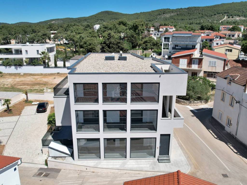 S5 - площадь 116 м2, расположена на втором этаже, состоит из: входа и коридора, 2 спален, ванной комнаты, гостиной, кухни и столовой, террасы, 1 парковочного места перед зданием, кладовки в подвале, Цена: 680.000,00 €